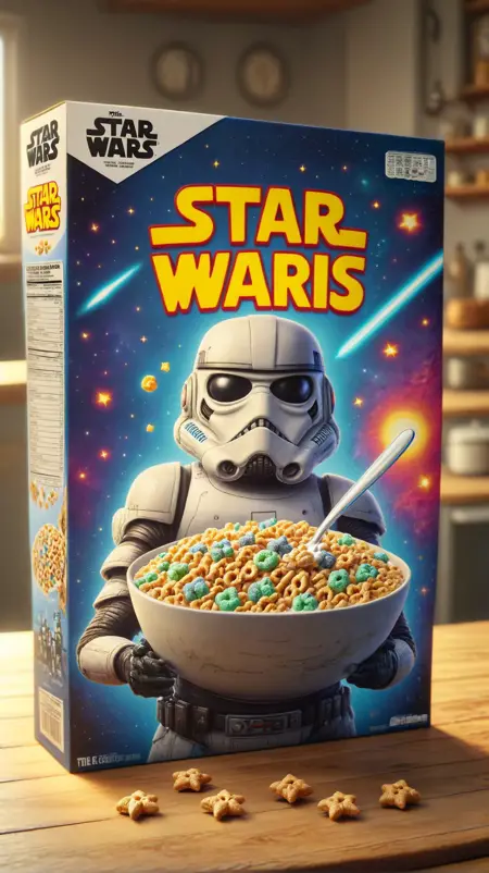那么,让我们生成有史以来最酷的麦片盒吧——你来决定名字和吉祥物,或许还可以设定一些参数——但LoRA会负责其余所有事情,并将它直接送到你的餐桌上,还配上一滩牛奶!