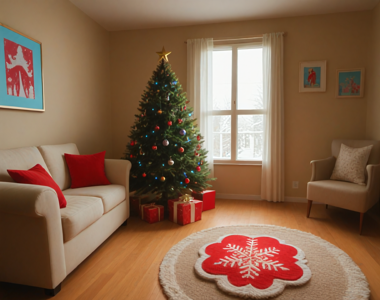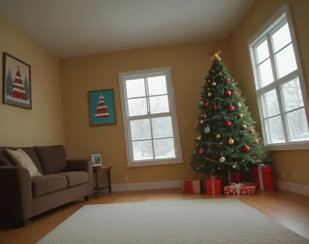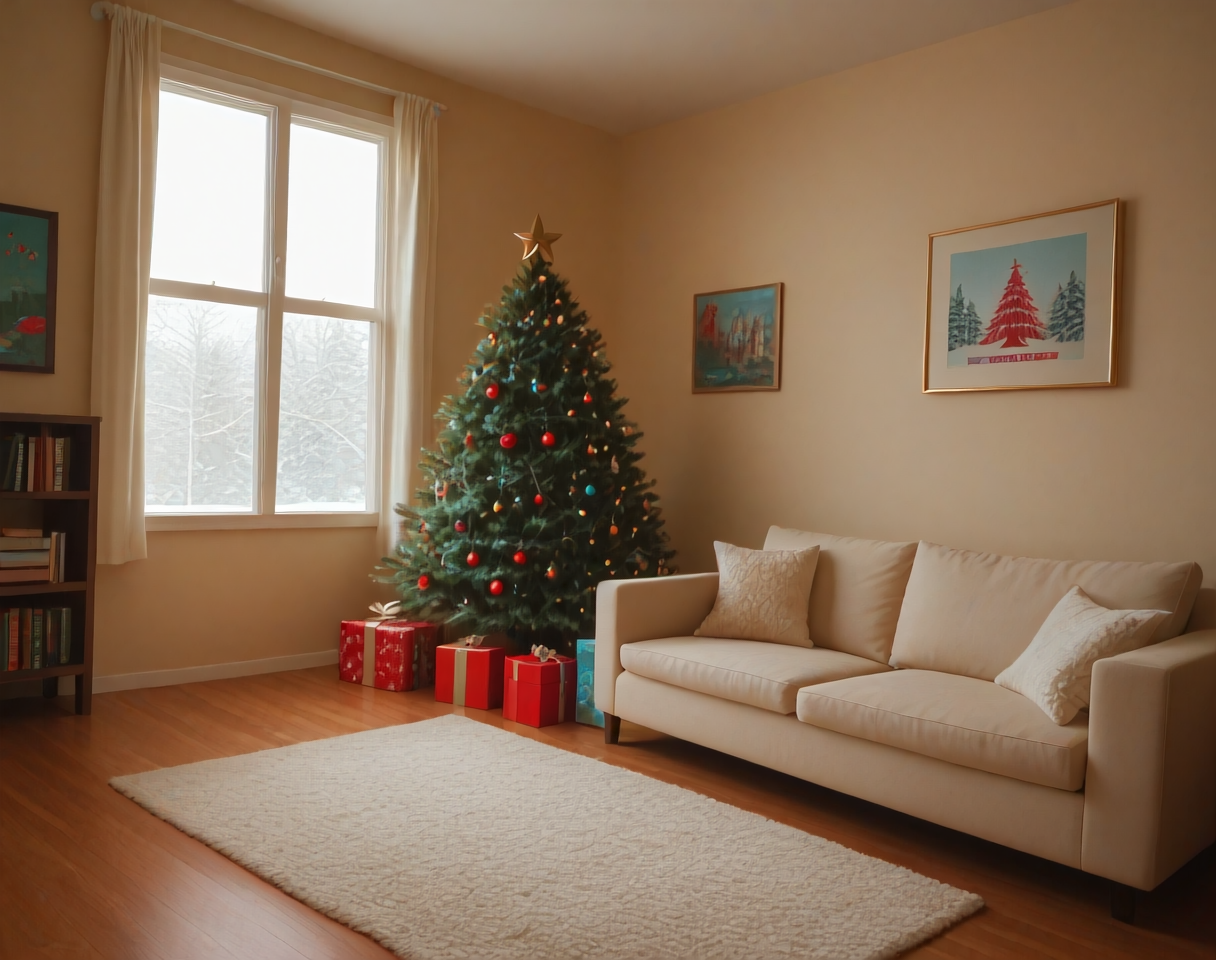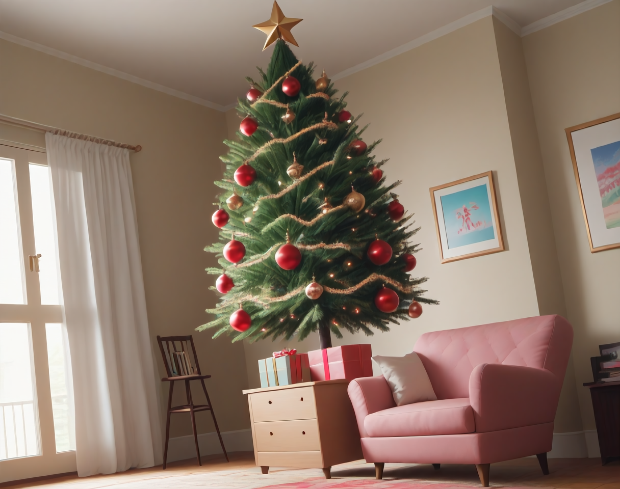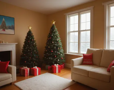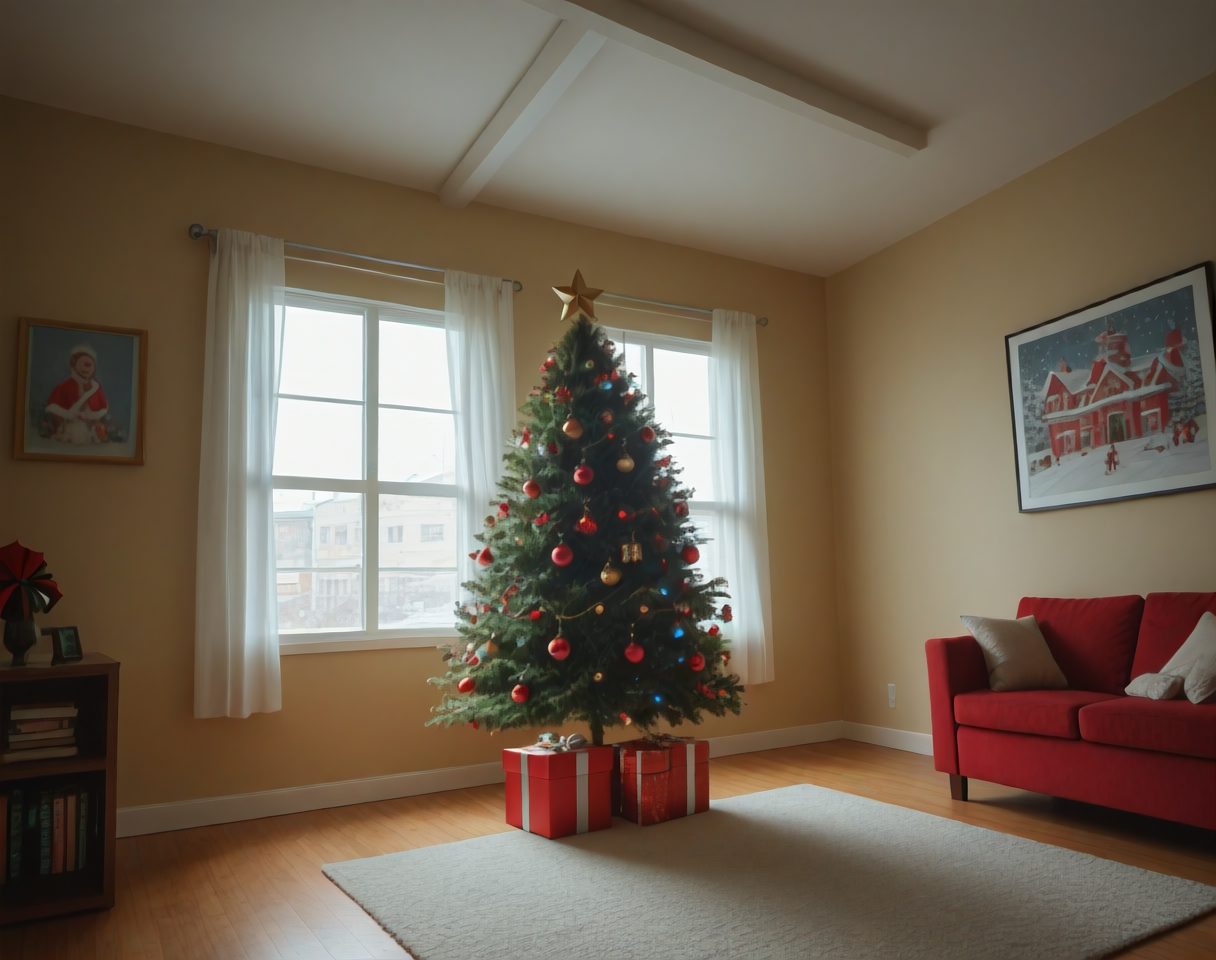 これは、クリスマステーマのリビングルームのインテリア装飾設定用のポニーLoRAです。