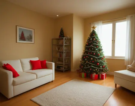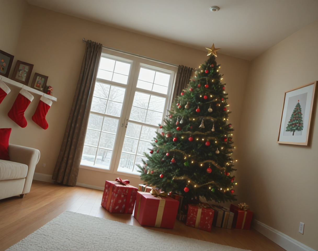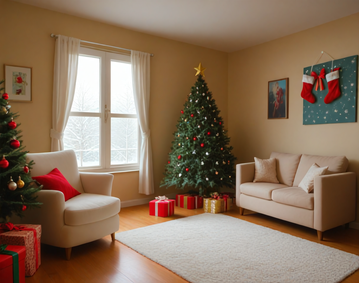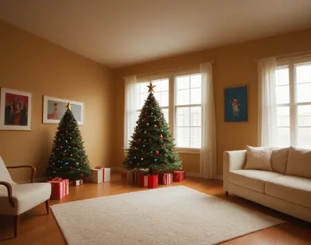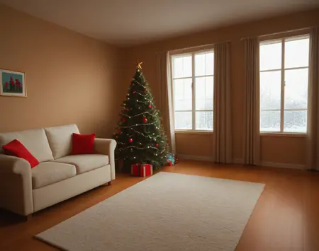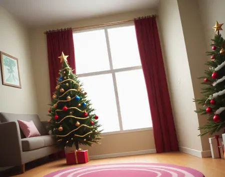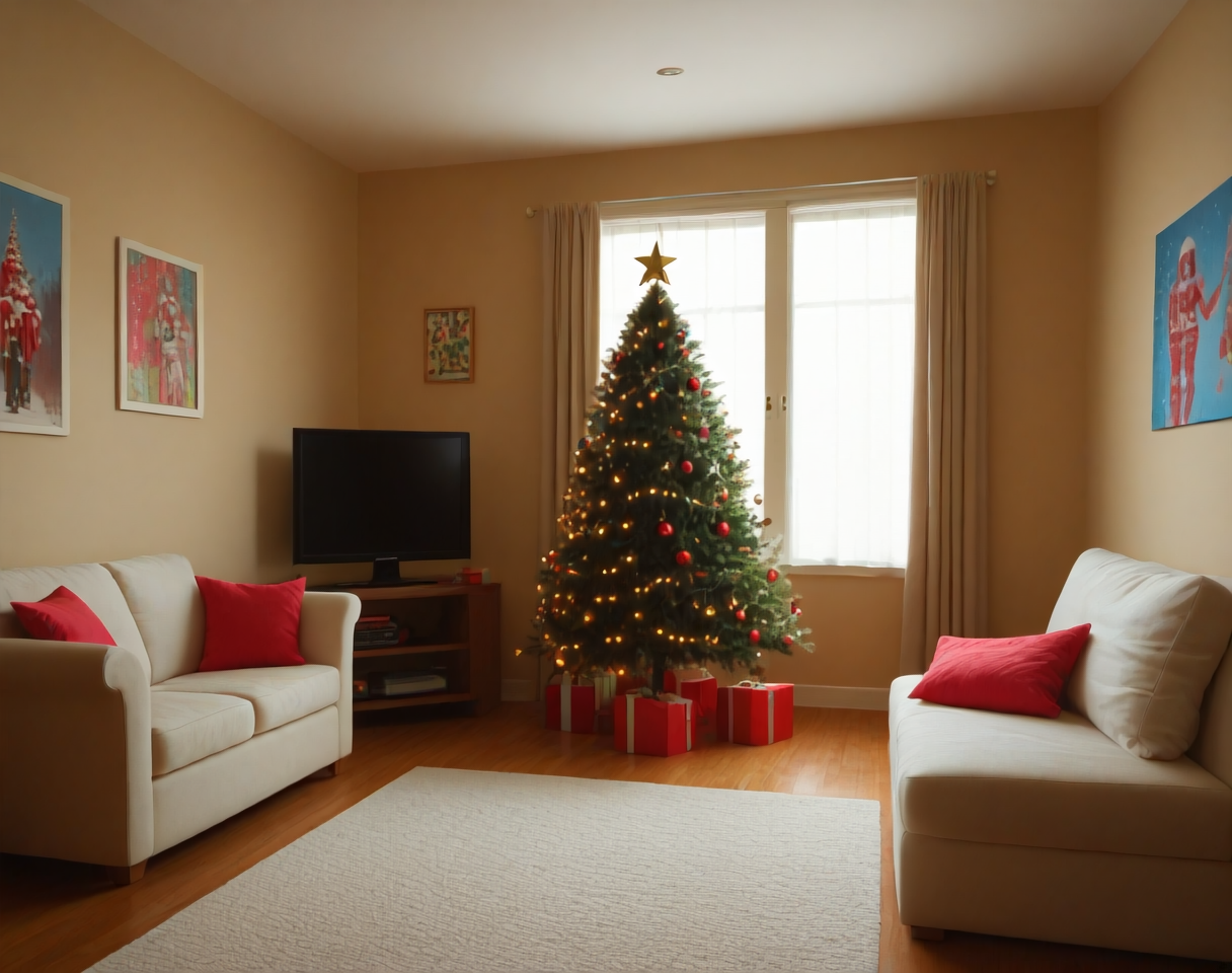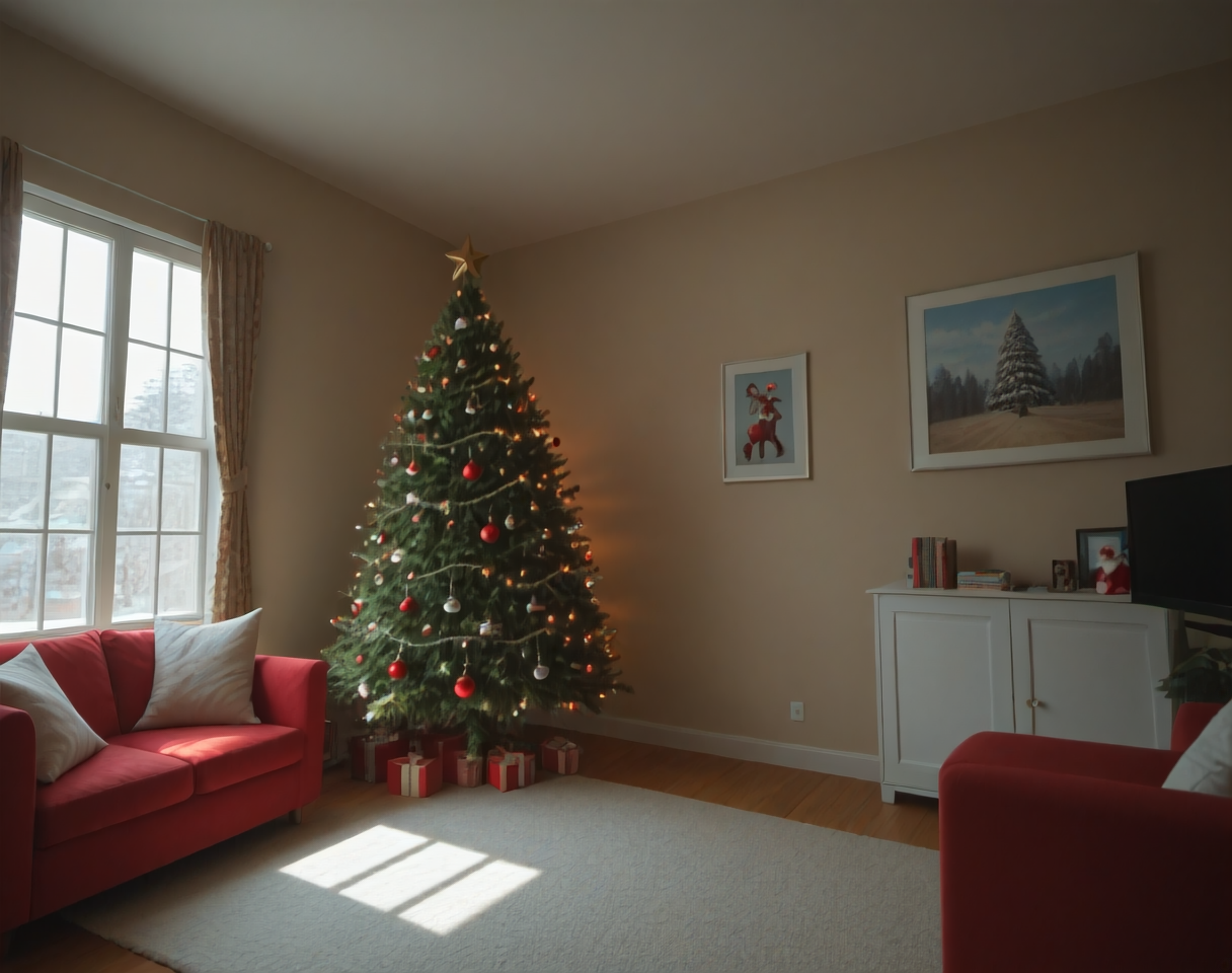 これは、クリスマステーマのリビングルームのインテリア装飾設定用のポニーLoRAです。