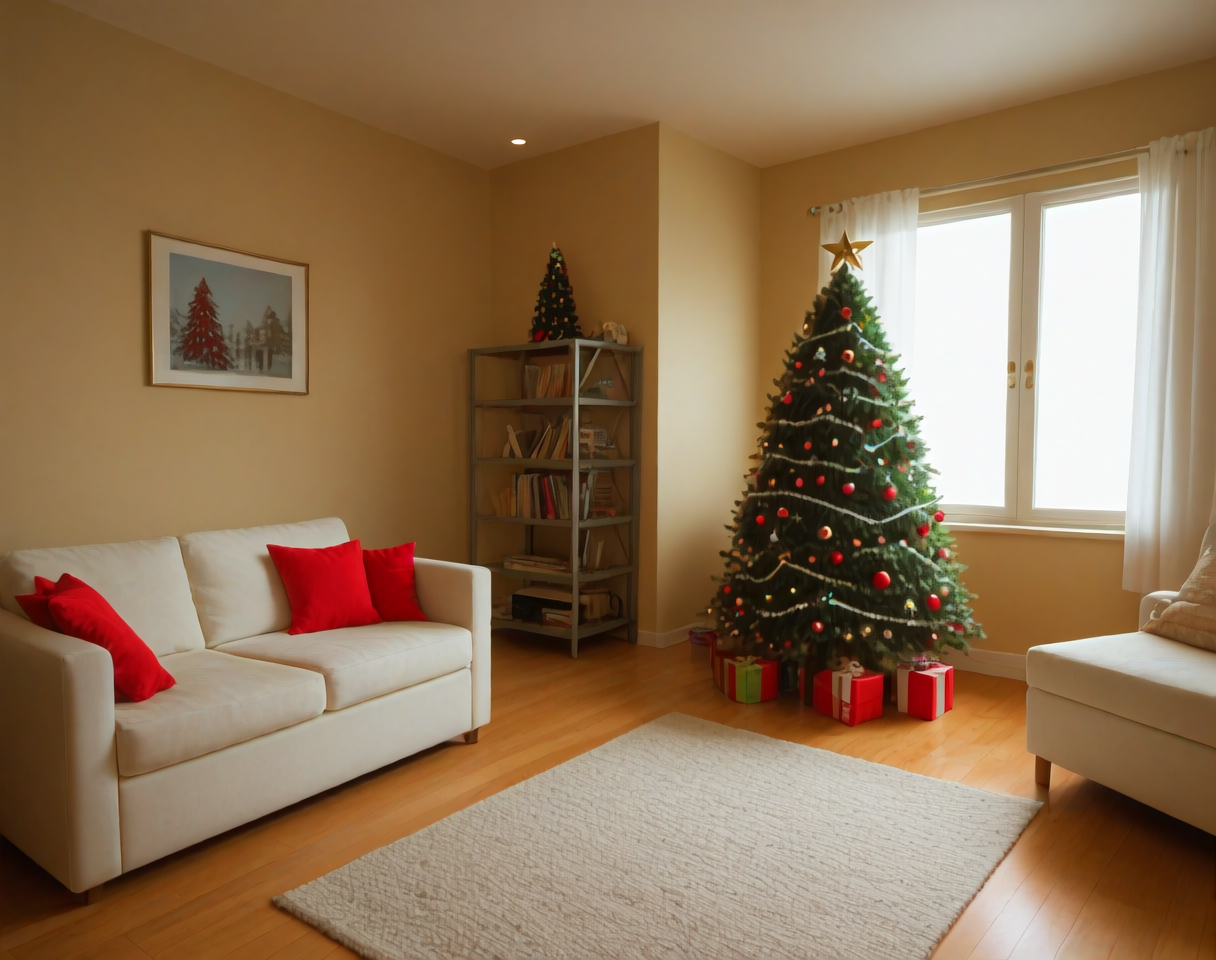 このLoRAのV1用のプロンプトは(XmasLivingRoom、interior、Christmas、living room)です。
