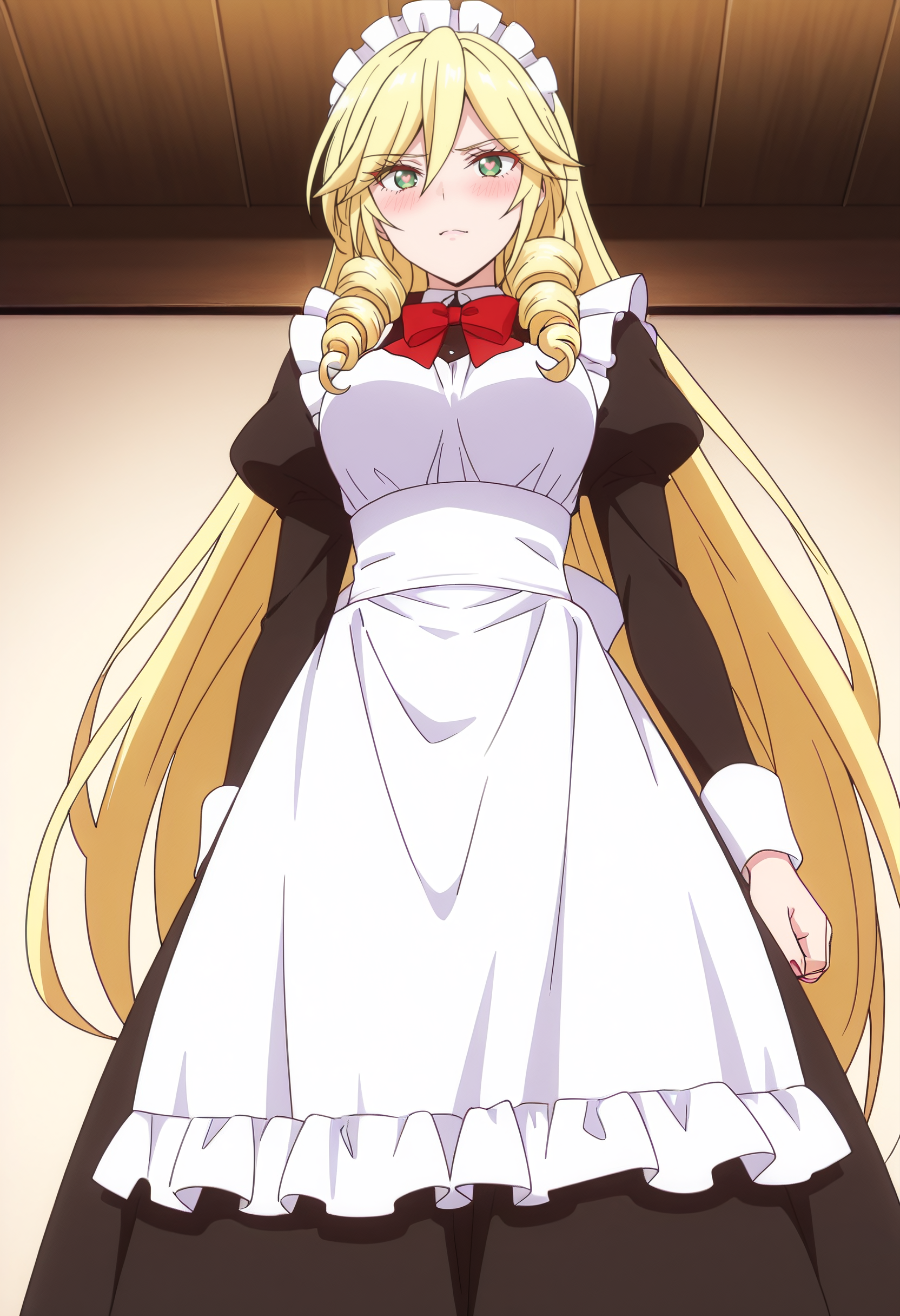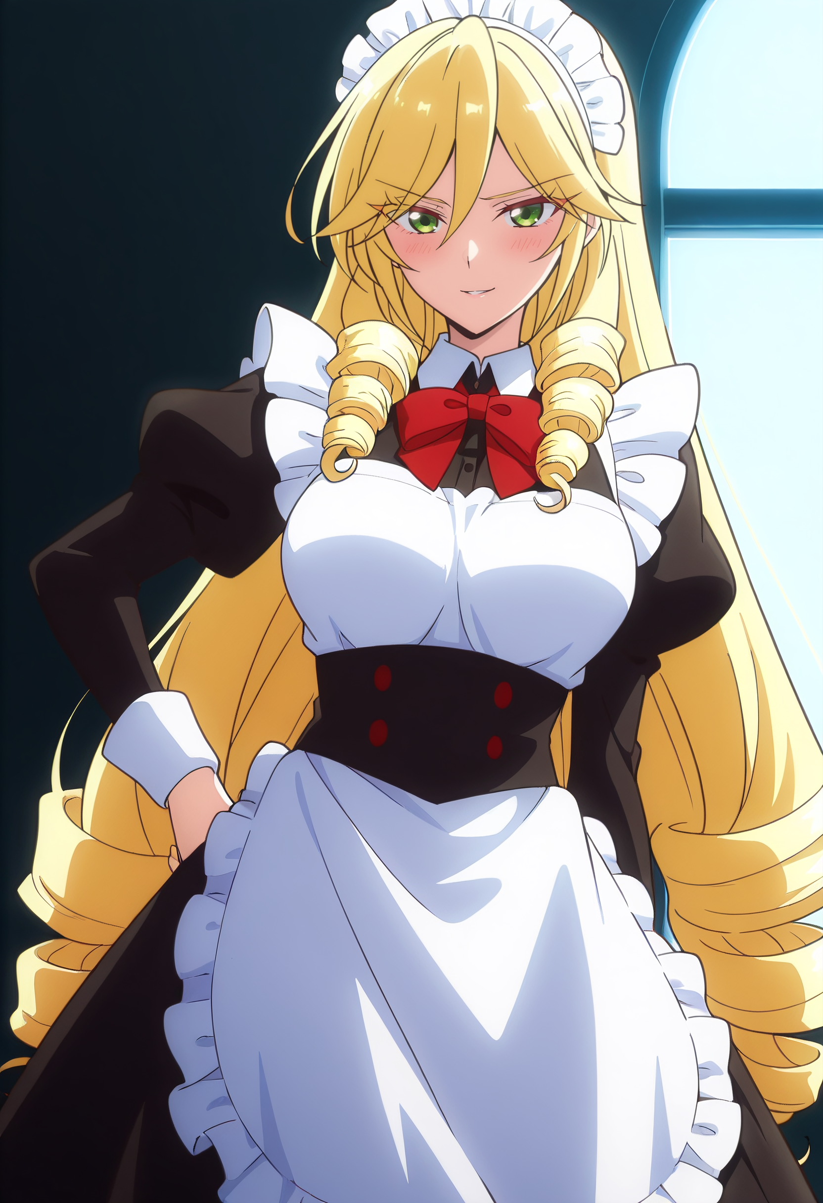 ScarletMaid,蓬松袖子,围裙,连衣裙,女仆,白色围裙,女仆围裙,长袖,荷叶边,黑色连衣裙,女仆装扮,花边围裙,丝带,蓬松长袖,朱丽叶袖,蝴蝶结,卷发,