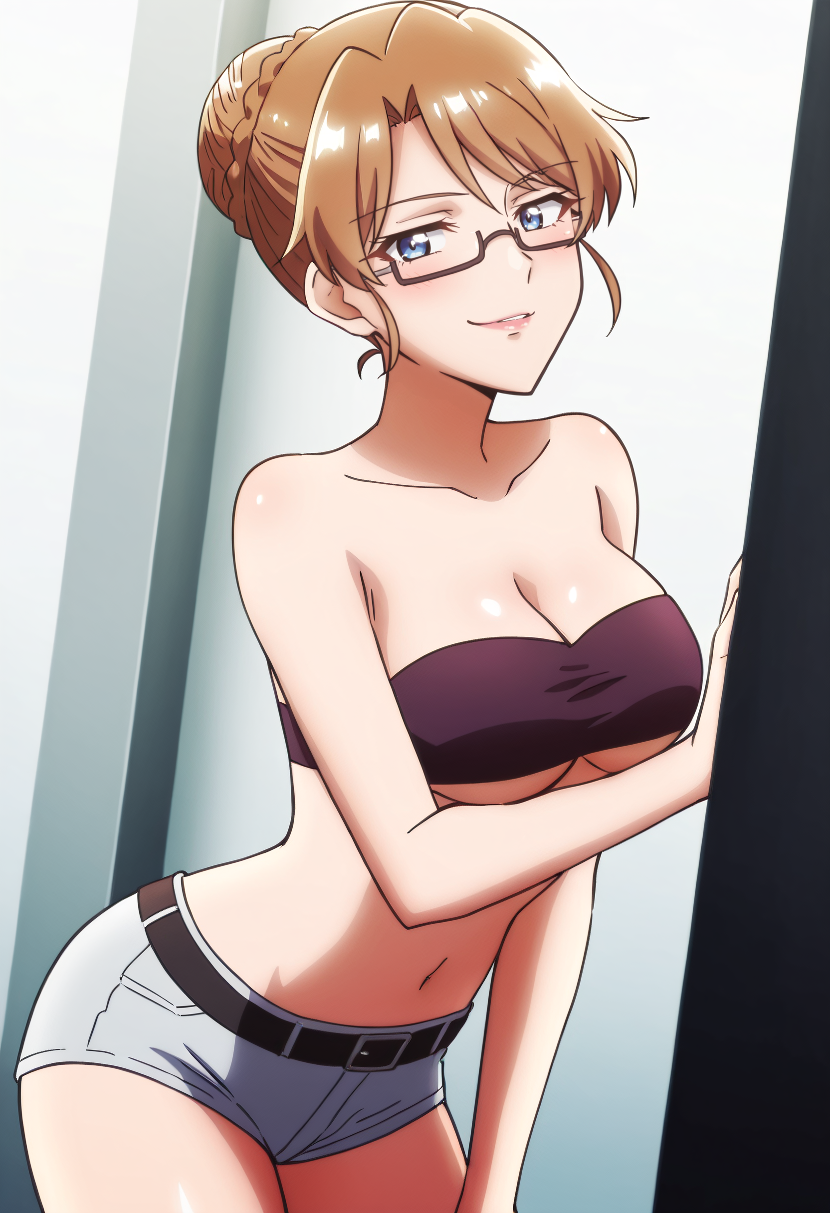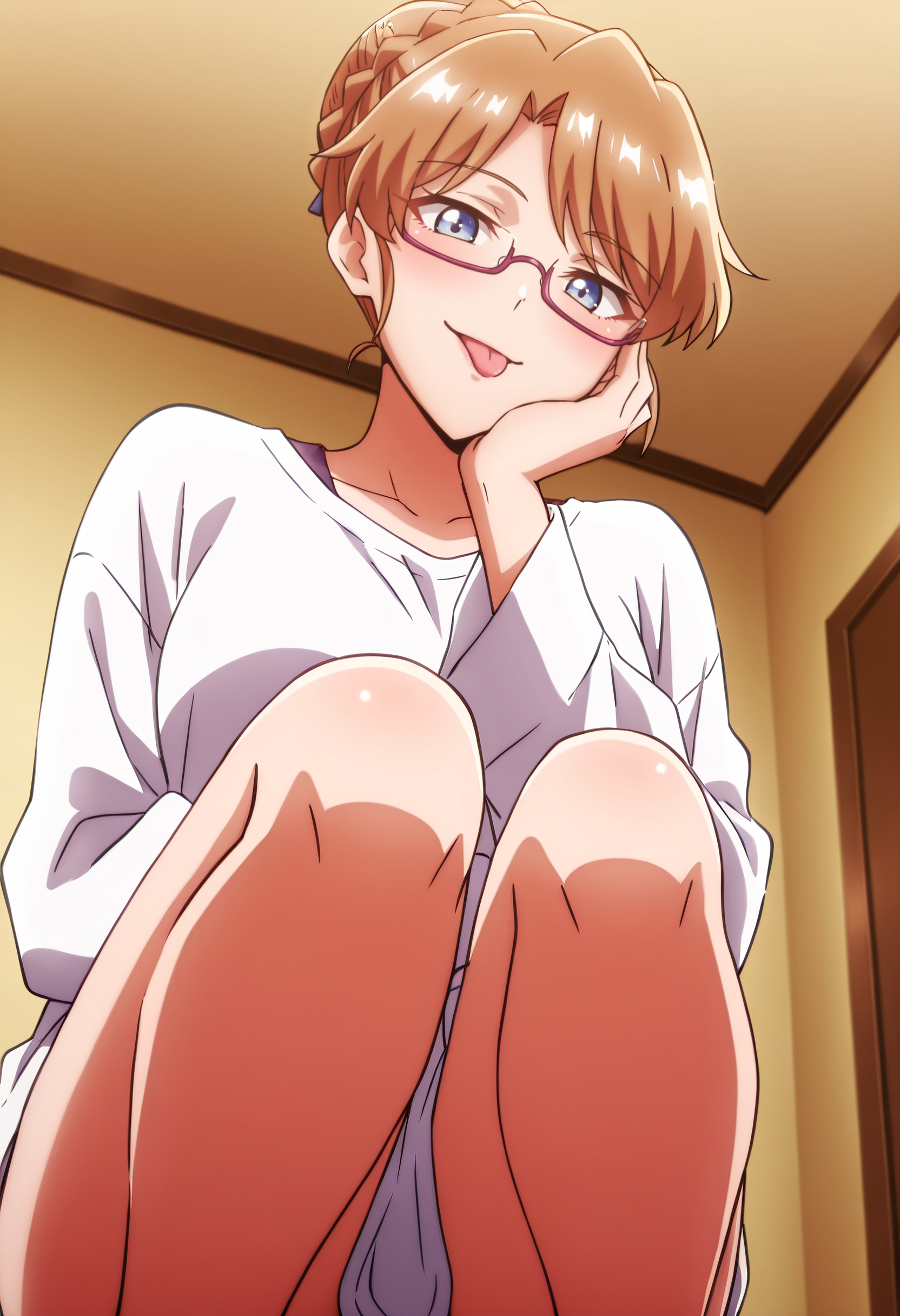 BNBHaru, brown hair, hair bun, short hair, glasses, braid, semi-rimless eyewear, under-rim eyewear,