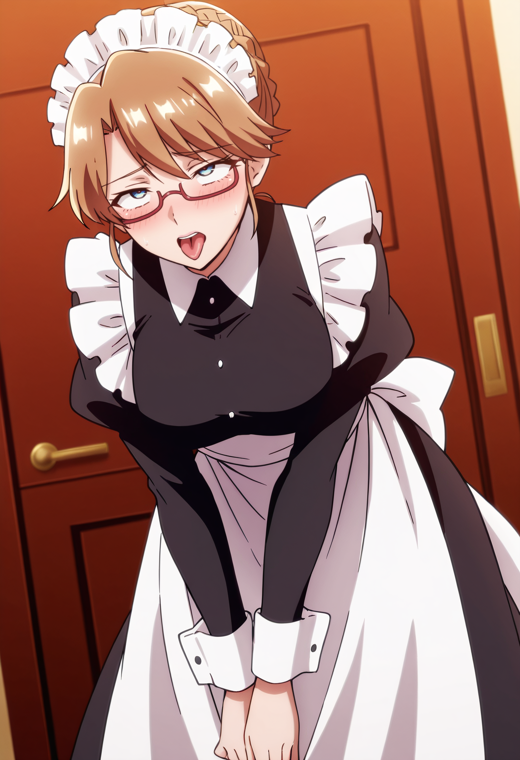 apron, white apron, puffy sleeves, maid, frilled apron, frills, long sleeves, maid apron, maid headdress, dress, enmaided, shirt, black vest, bow, buttons, waist apron, black skirt, white shirt, skirt, black dress,