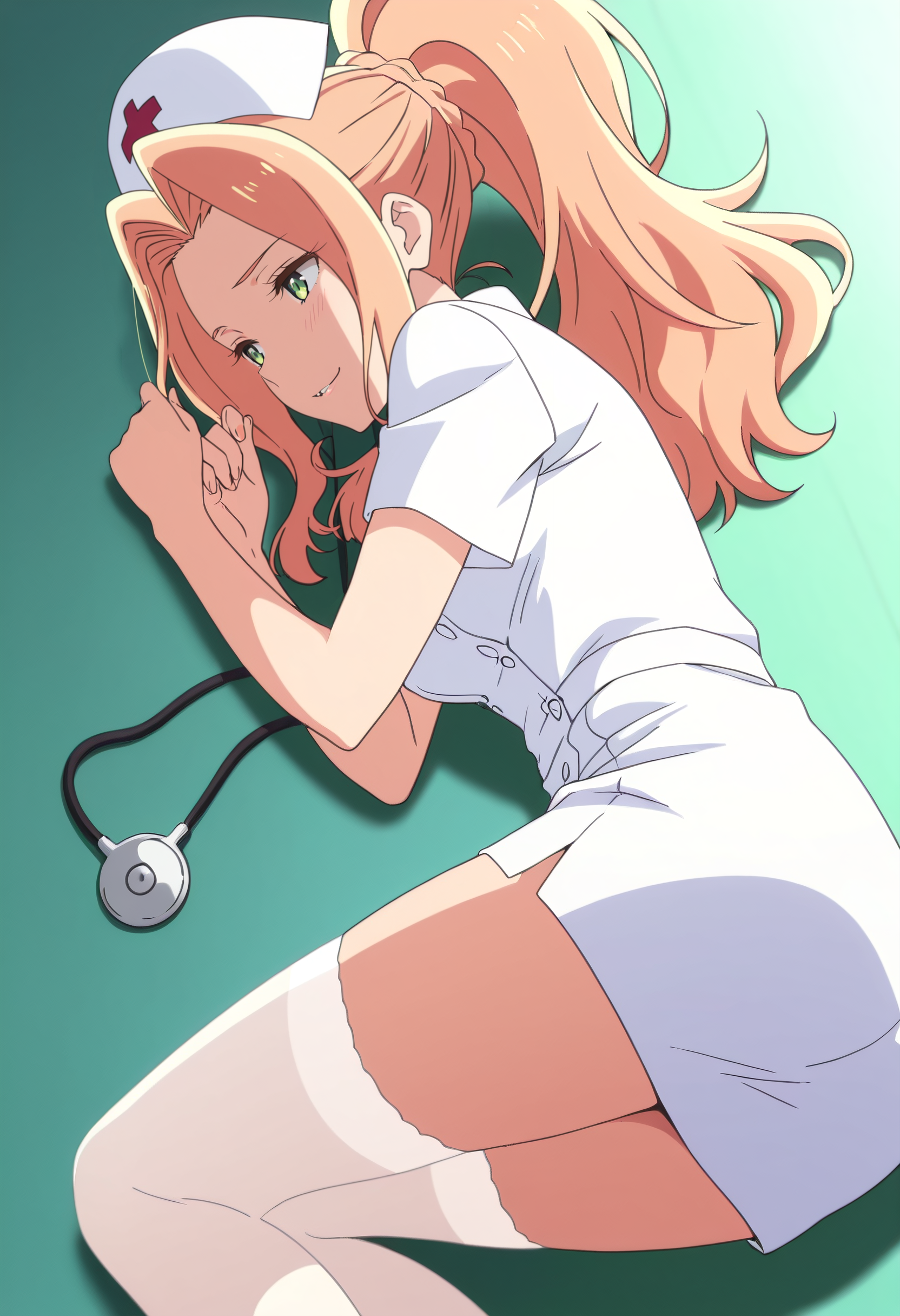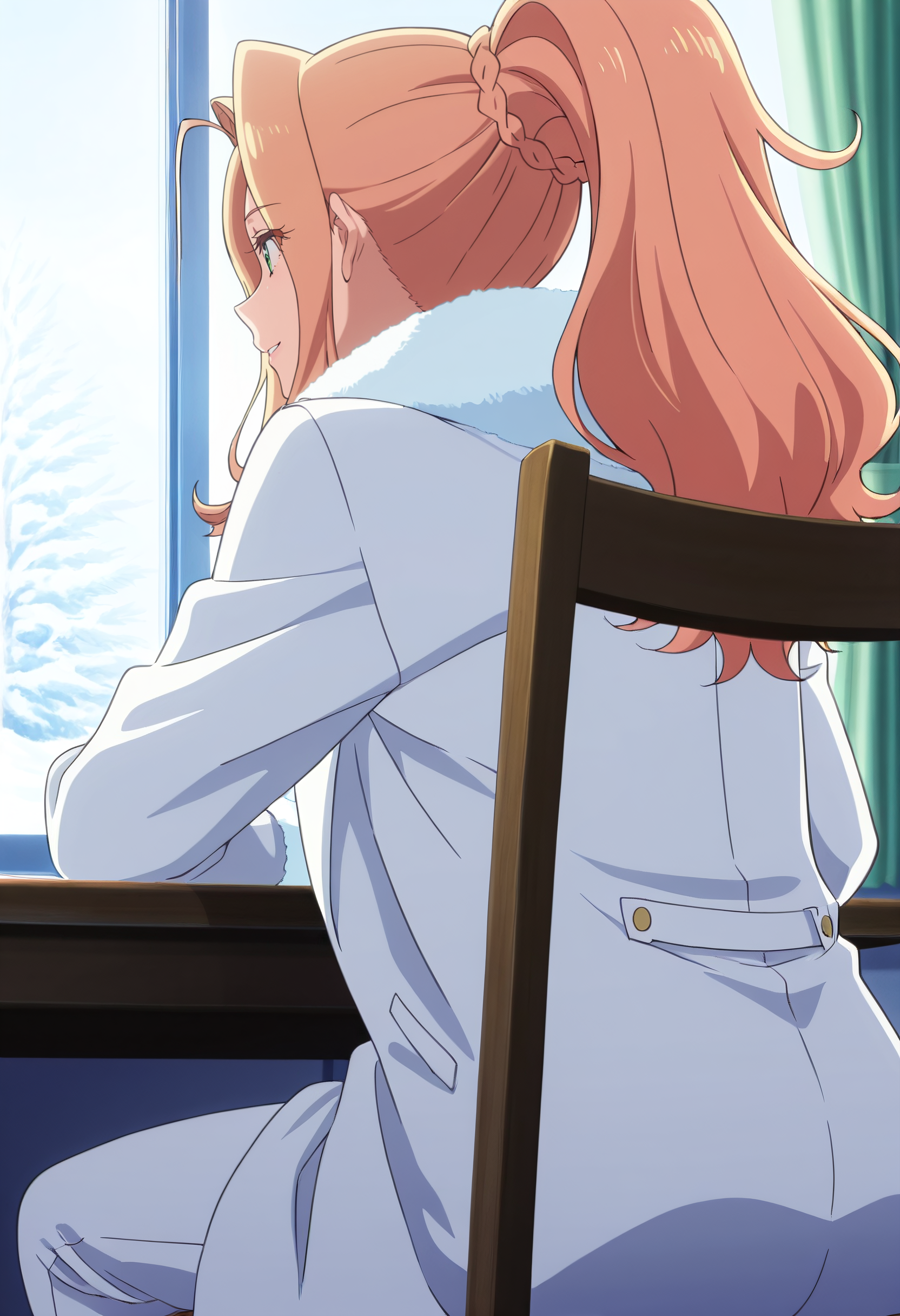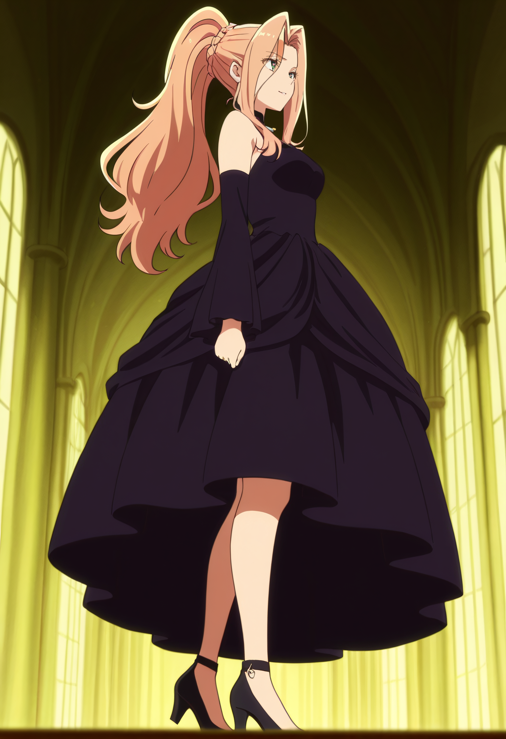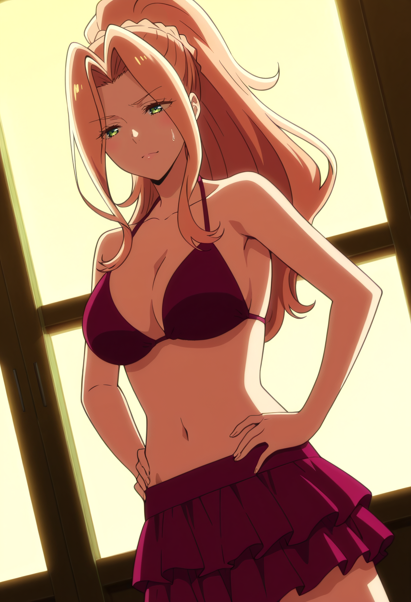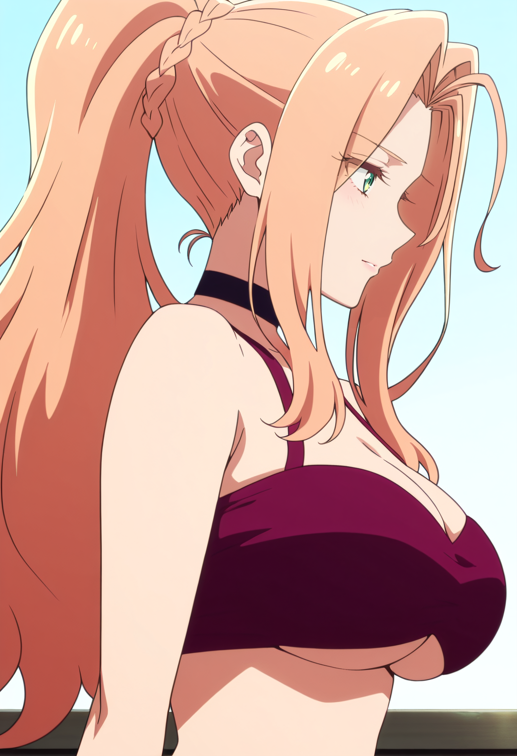 BGFKikuna, 긴 머리, 녹색 눈, 포니테일, 금발 머리, 땋은 머리, 앞머리, 머리카락 흐름, 높은 포니테일,