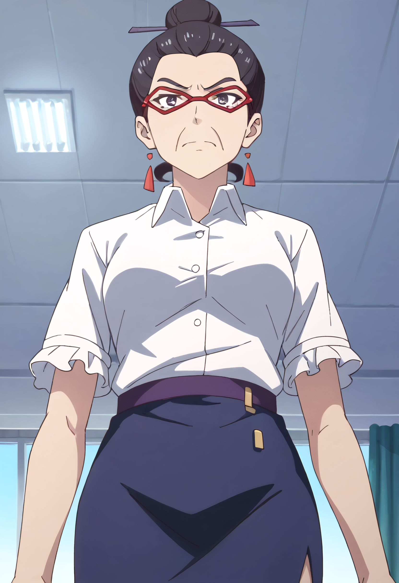 formal, suit, jacket, earrings, jewelry, shirt, white shirt, collared shirt, skirt, long sleeves, office lady, hair ornament, hair stick, pencil skirt, teacher, skirt suit,