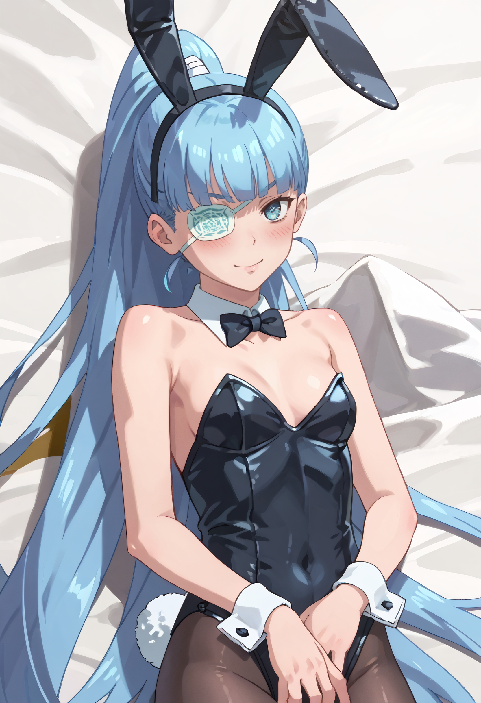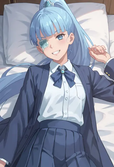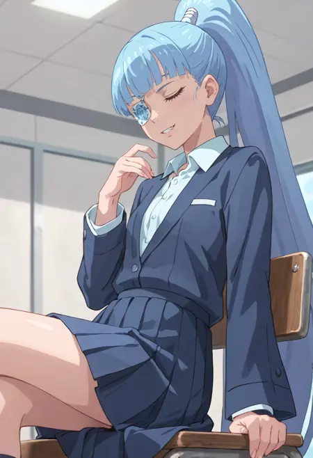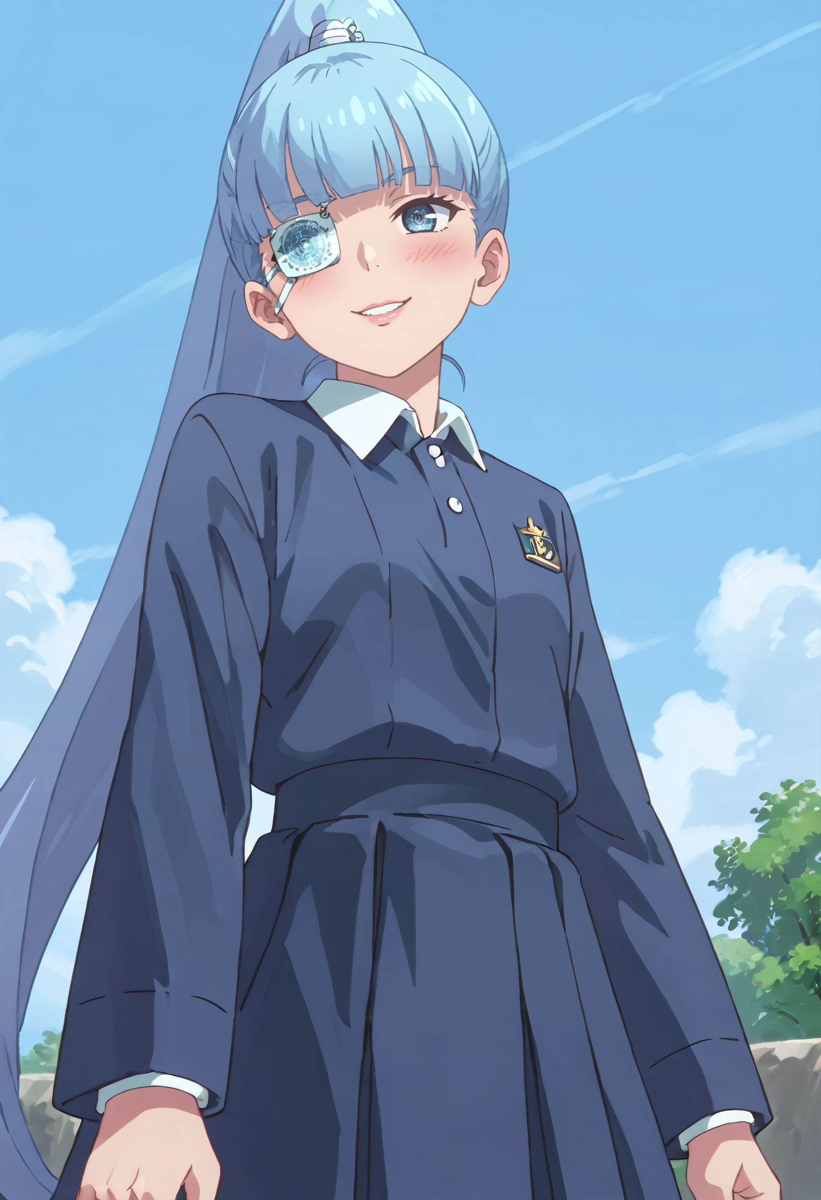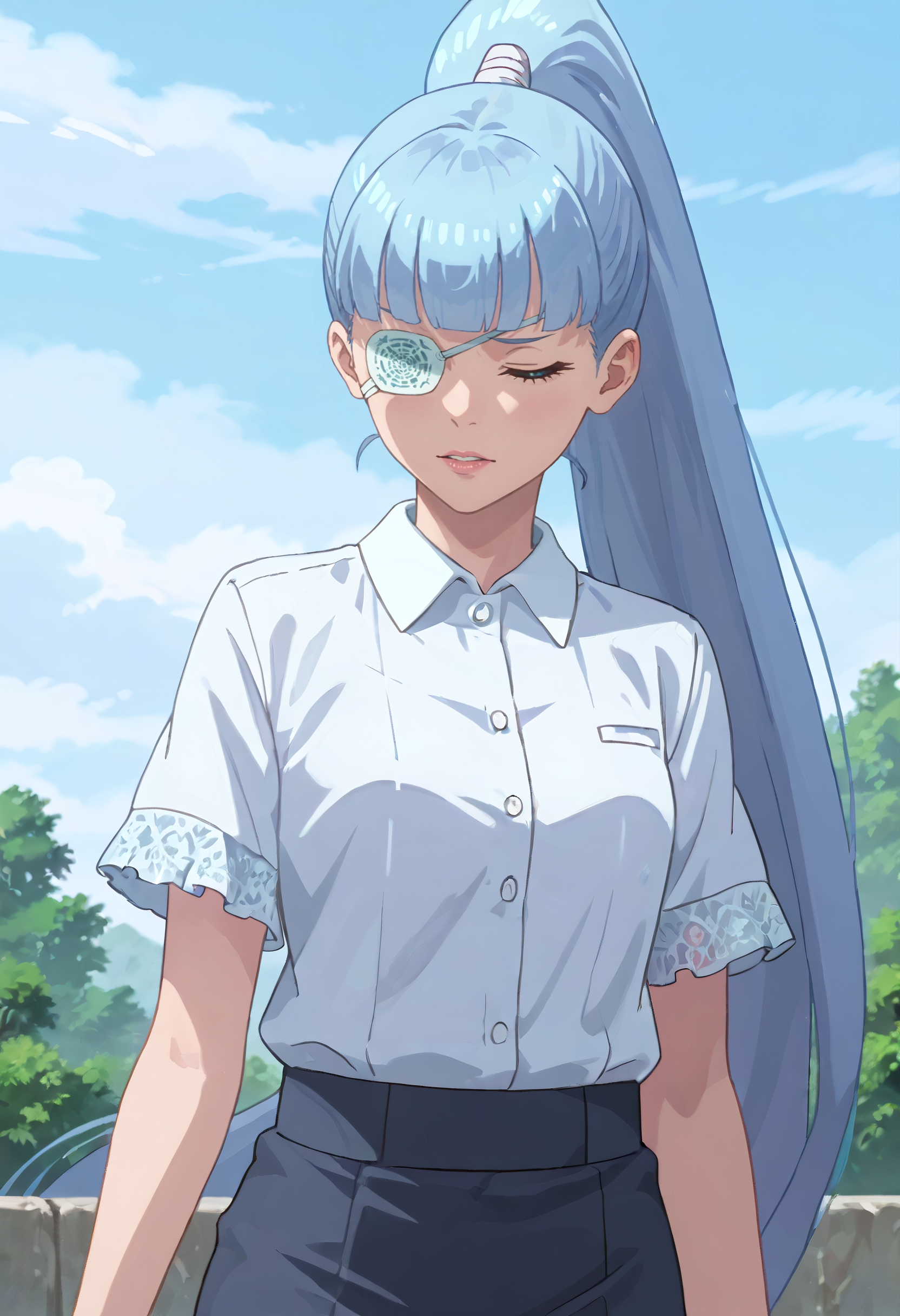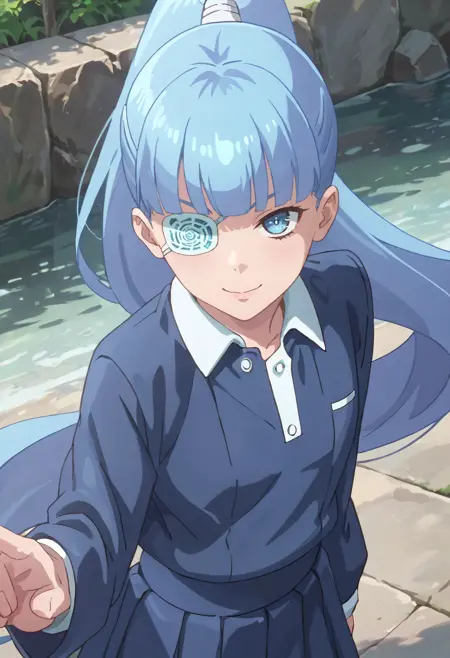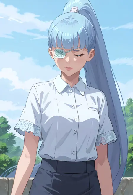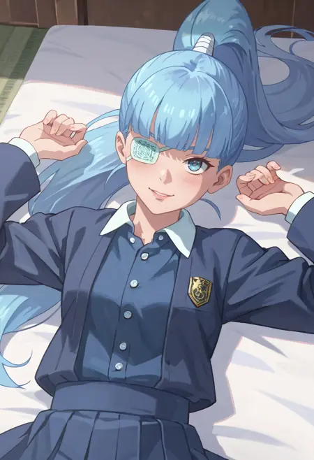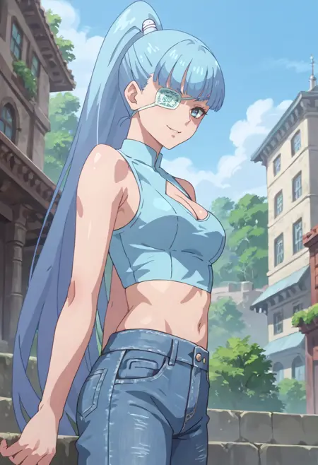 TDLSeaSword, long hair, bangs, blunt bangs, blue hair, ponytail, blue eyes, very long hair, eyepatch,
