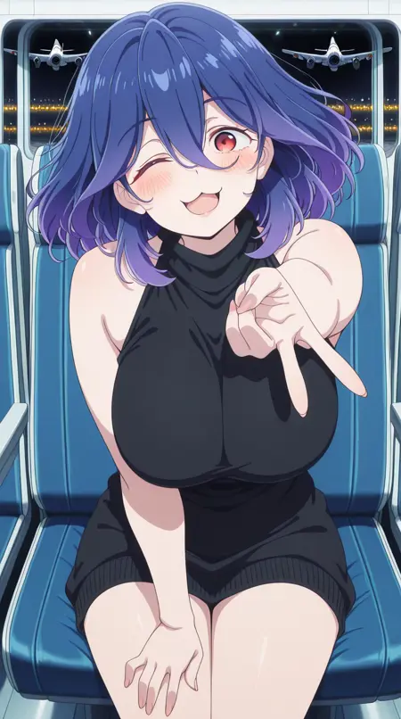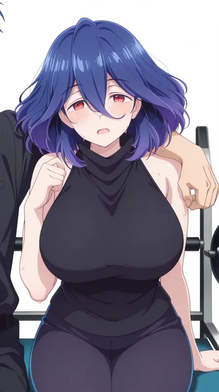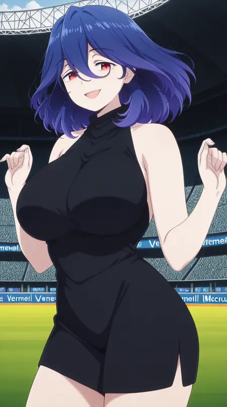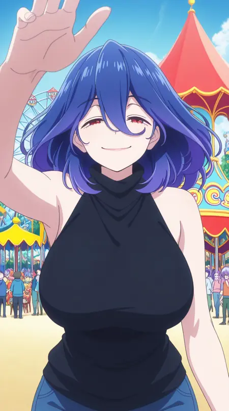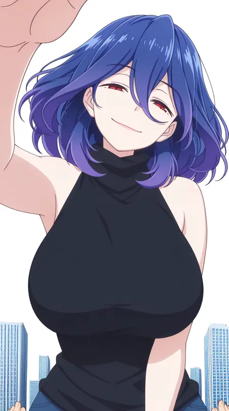 ベルメイユ、赤い目、目の間の髪、青い髪、紫の髪、複色の髪、中長髪、成熟した女性、大きな胸、アニメスクリーンキャプチャ