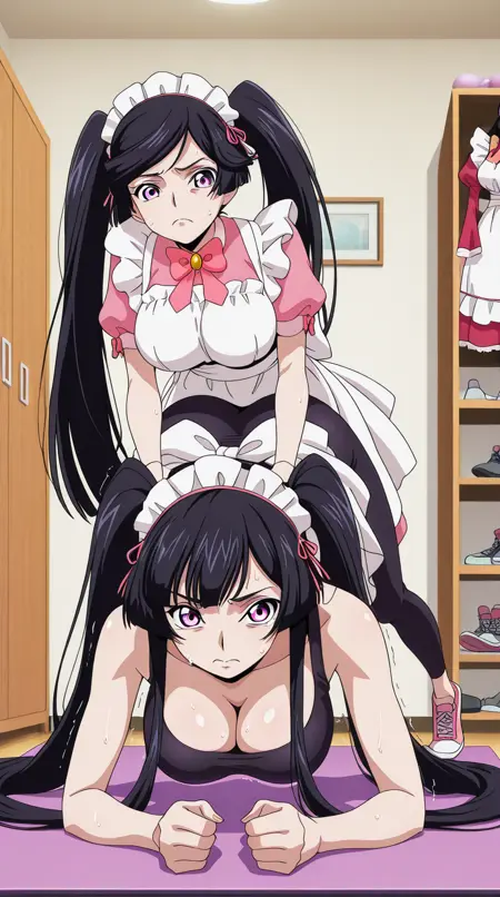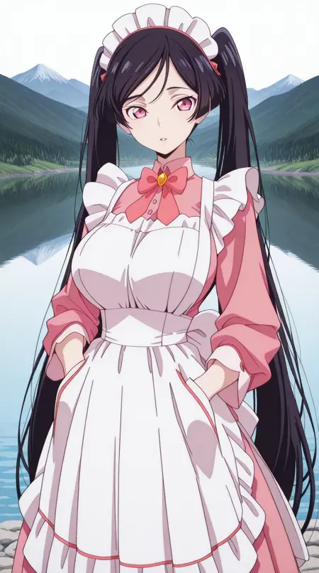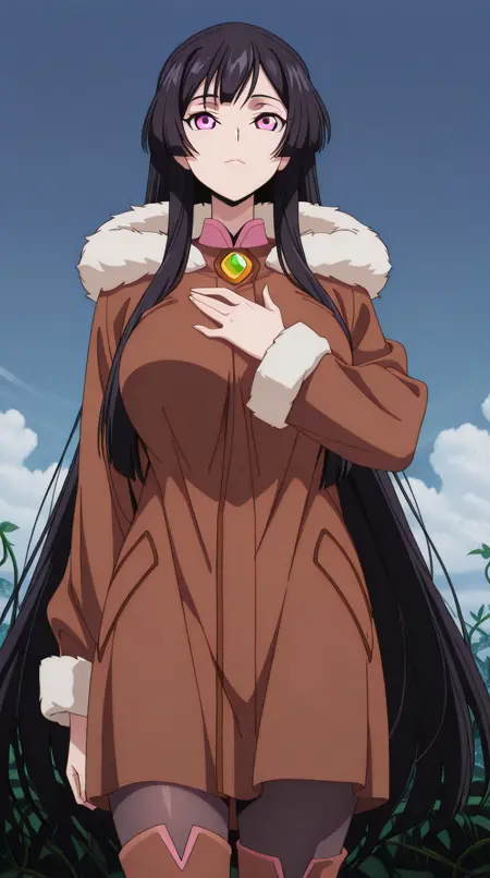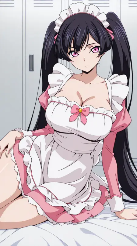 サクヤ・スメラギ、長い髪、黒髪、非常に長い髪、ピンクの目、成熟した女性、大きな胸、アニメのスクリーンキャプチャ