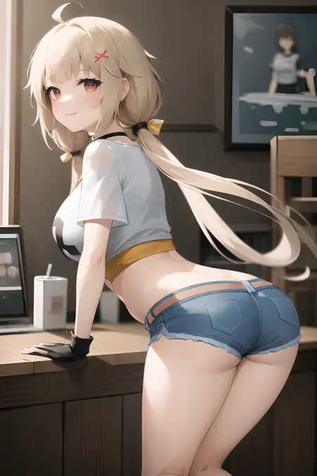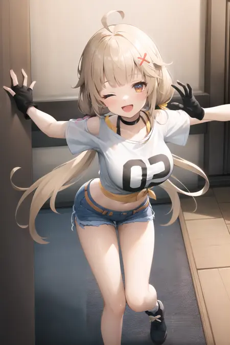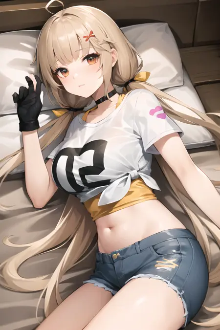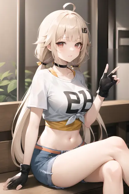 LoRA는 전반적으로 큰 문제가 없으며, 각 동작과 옷의 안정성도 좋습니다. 가슴 부분의 "0 2"는 랜덤으로 나올 수 있으니 직접 PS로 수정해도 좋습니다. 옷은 자유롭게 교체할 수 있으며, nude라고 쓰면 거의 경우의 수 없이 옷이 남지 않고 완전히 벗은 상태로 생성됩니다. 작은 문제로는 3D 스크린샷의 영향으로 머리카락 색이 금발이 아니라 갈색 계열로 나오는 경우가 있습니다. 머리카락 색이 연하다고 느끼시면 "yellow hair"를 추가하세요.