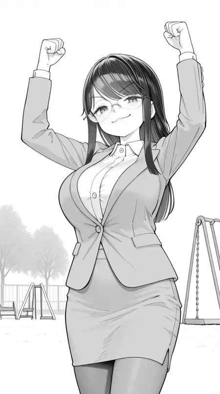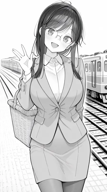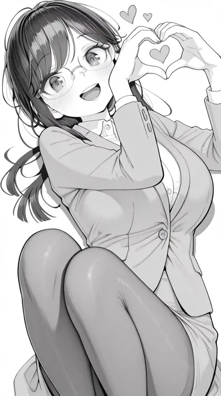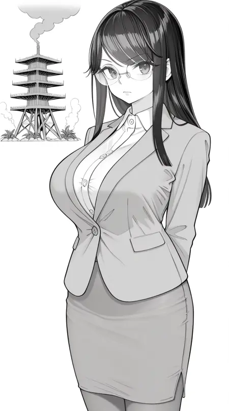 水谷彩香,长发,黑发,单色,灰度,眼镜,刘海,侧发,成熟女性,大胸