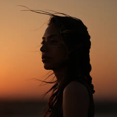 fe85f14 스타일로, 검은 피부와 표현력 있는 눈을 가진 젊은 여성이 관찰자와 눈을 마주친다. 그녀의 머리는 팔 위에 가볍게 기대어 어깨 근처로 부드럽게 굽혀 있다. 따뜻하고 차가운 톤이 조화를 이루는 화려한 기하학 무늬 스카프를 두르고 있다. 부드러운 앰비언트 빛이 그녀의 볼과 입술의 곡선을 강조하며, 배경은 매끄럽고 따뜻한 흐림으로 녹아든다. 그녀의 표정은 사색적이고 친밀하며 조용하며, 얼굴 주변에 미세한 하이라이트 블룸이 감돈다.