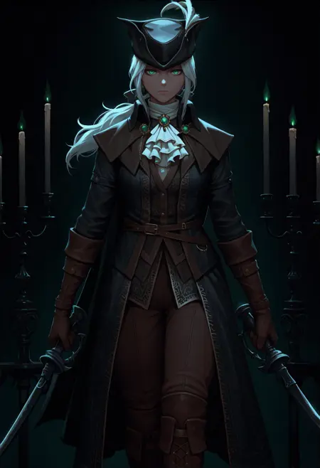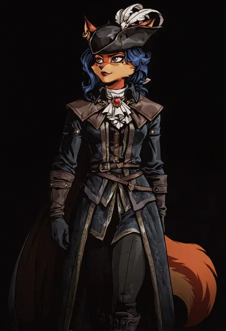 • 服装标签:三角帽、帽羽、黑帽、胸针、绿宝石、白色领结、黑外套、黑斗篷、侧斗篷、棕色手套、腰带扣、棕色长裤、及膝靴、棕色鞋履、交叉系带鞋履
