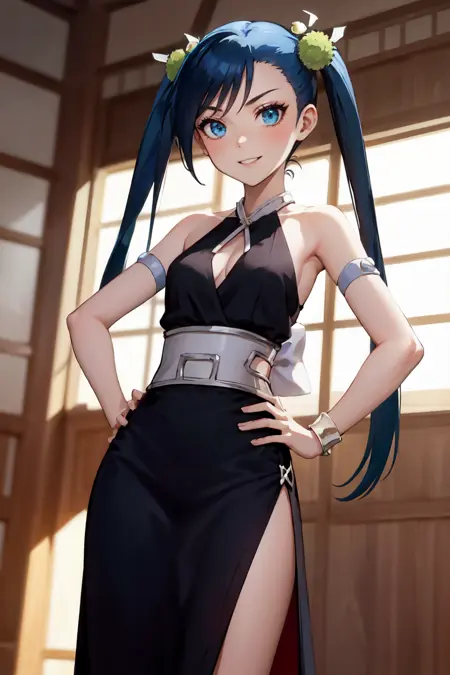 彼女の標準的な外見には "ツインテール、長い髪、髪飾り" を追加してください。