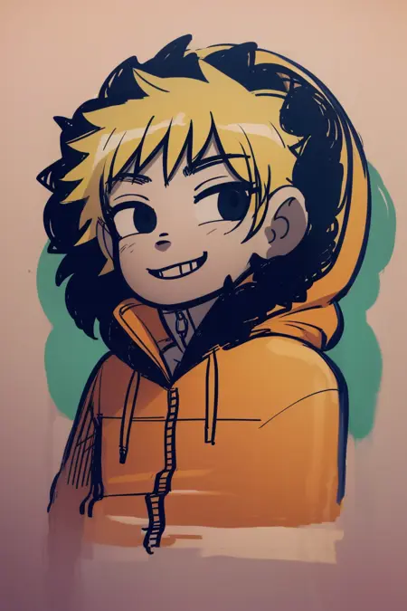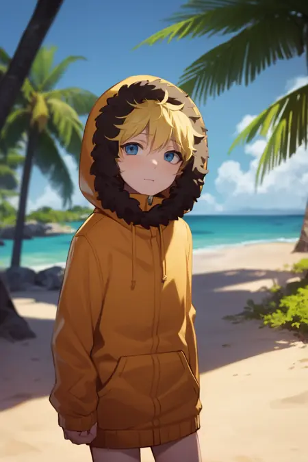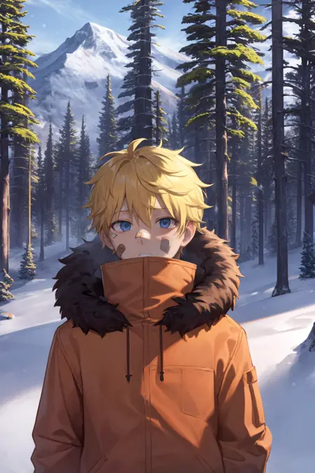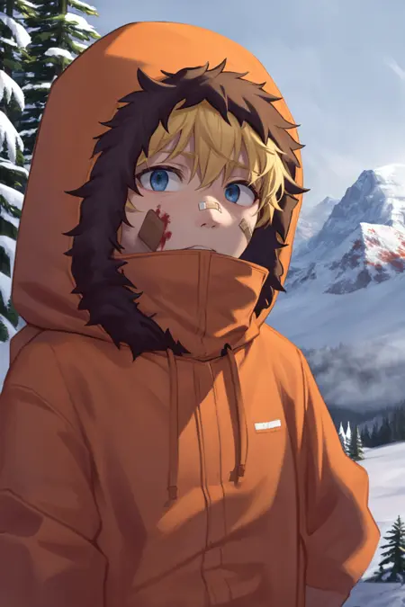 提示激活词:kenny其他提示:金色头发,短发,蓝眼睛服装提示:连帽拉起,派克大衣,毛皮镶边,夹克受伤提示:创可贴,脸上有创可贴,血迹