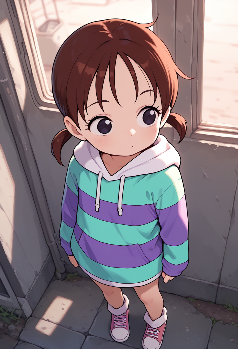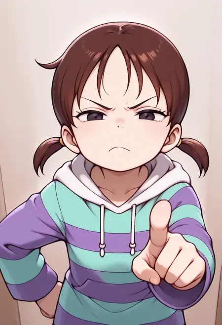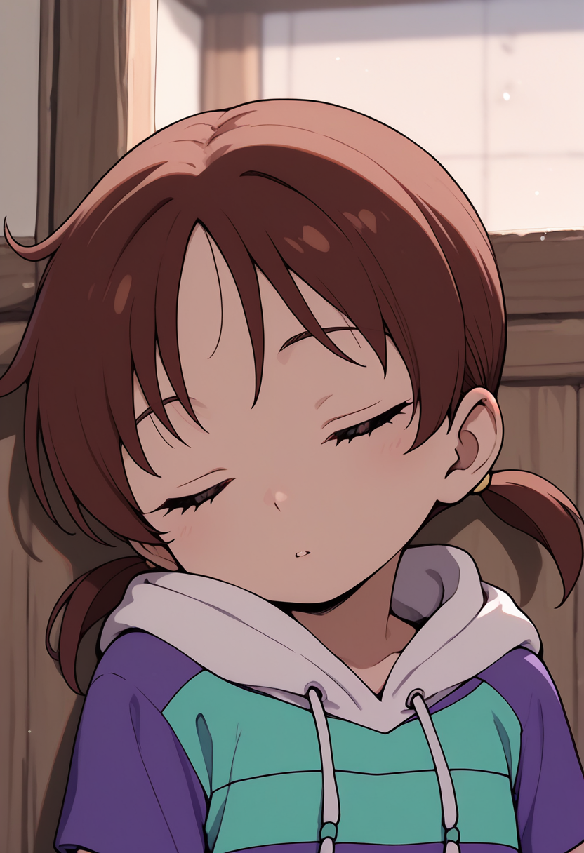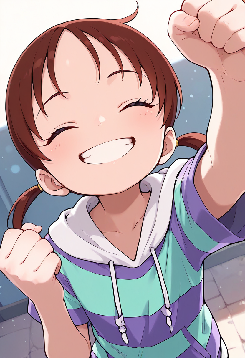 触发词: rika, 1girl, 棕色头发, 低双马尾, 短双马尾, 黑色眼睛