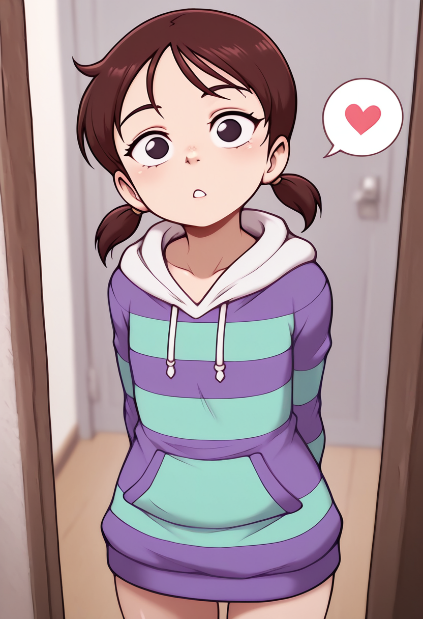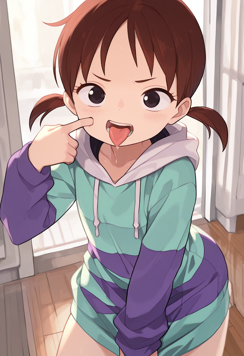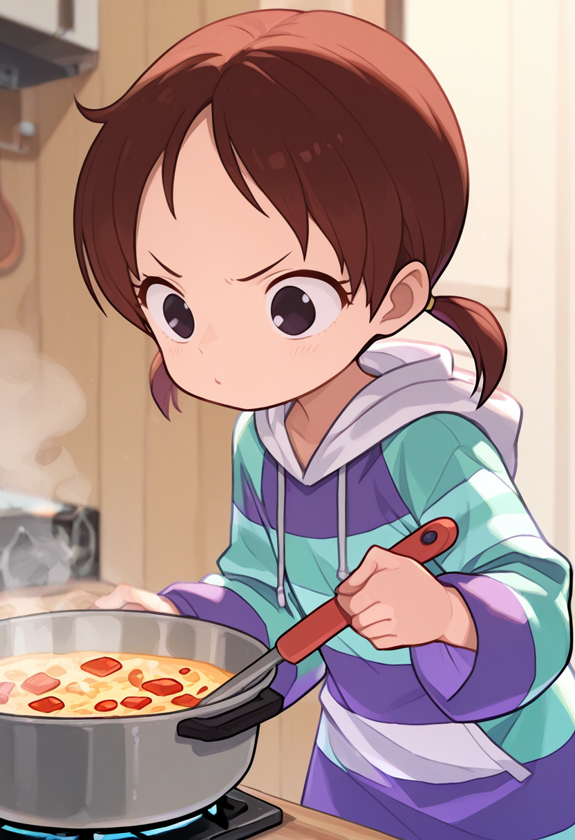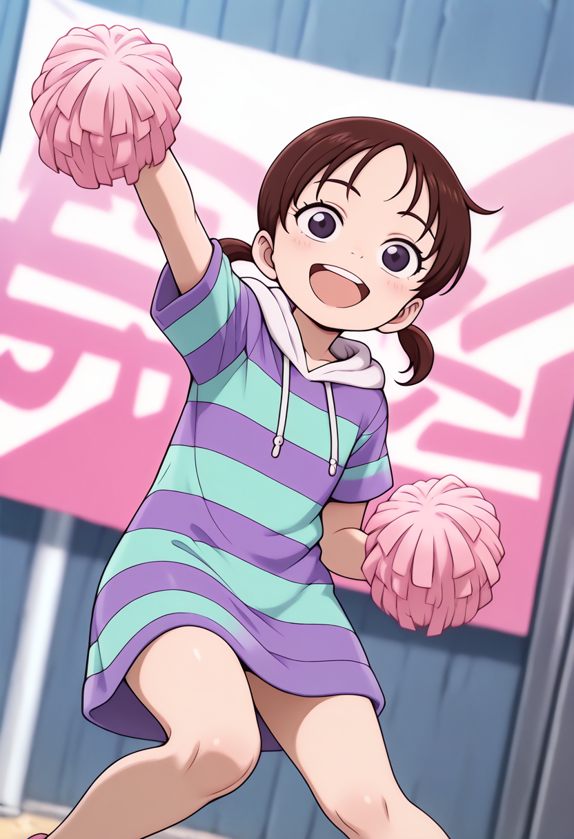 触发词: rika, 1girl, 棕色头发, 低双马尾, 短双马尾, 黑色眼睛