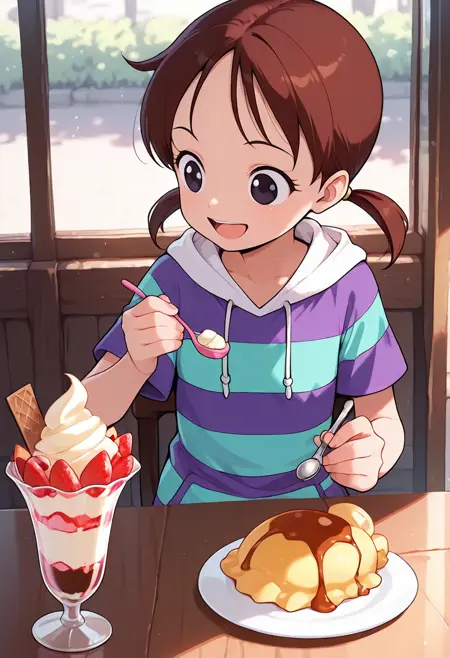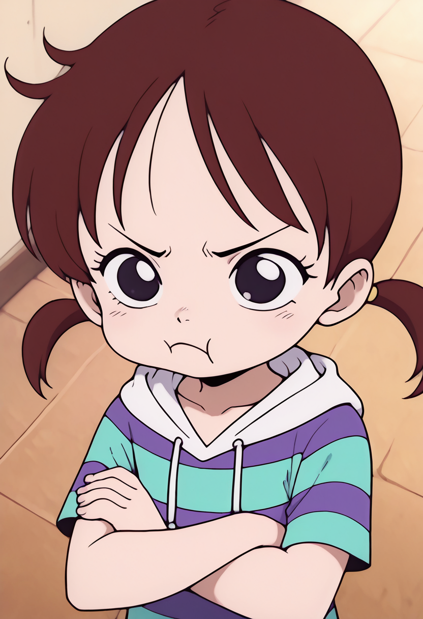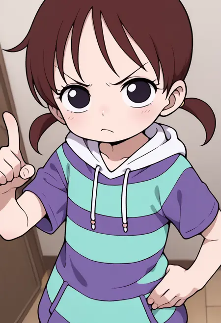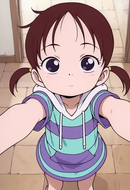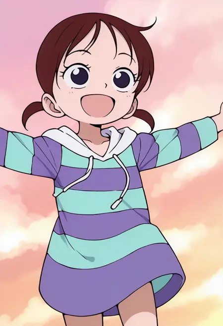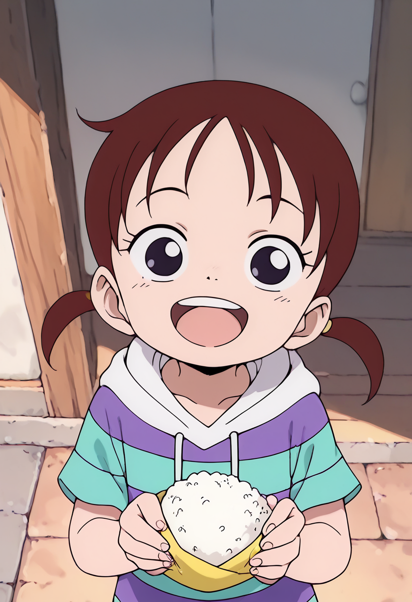 一个来自《海贼王》中里卡的角色LoRa。她首次出现在动画第2集“伟大的剑士登场!海盗猎人罗罗诺亚·佐罗”中,在佐罗为她对抗赫尔彭后,她与路飞和佐罗产生了交集。该LoRa仅使用动画《浪漫 Dawn》篇章的截图进行训练。
