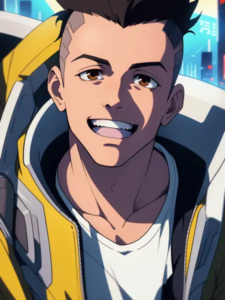此LoRA模型以《赛博朋克:边缘行者》中的大卫·马丁内斯为原型进行训练,最初基于'maturemalemix_v14.safetensors'进行训练。