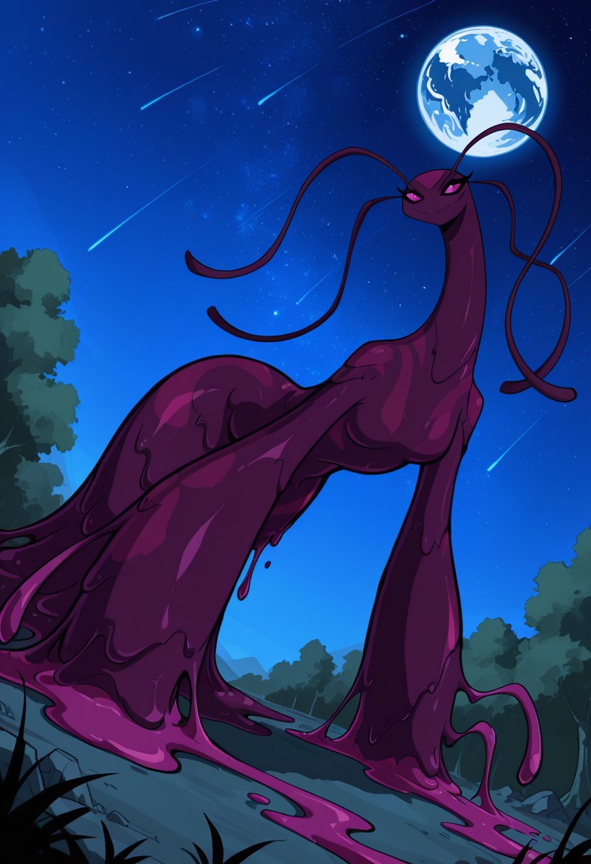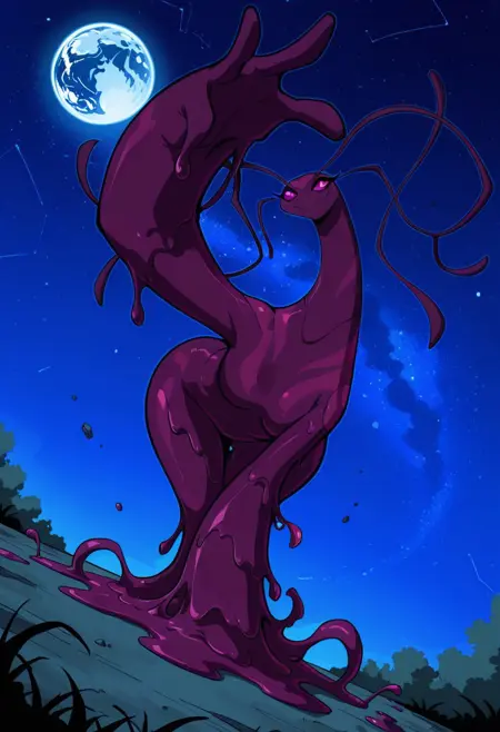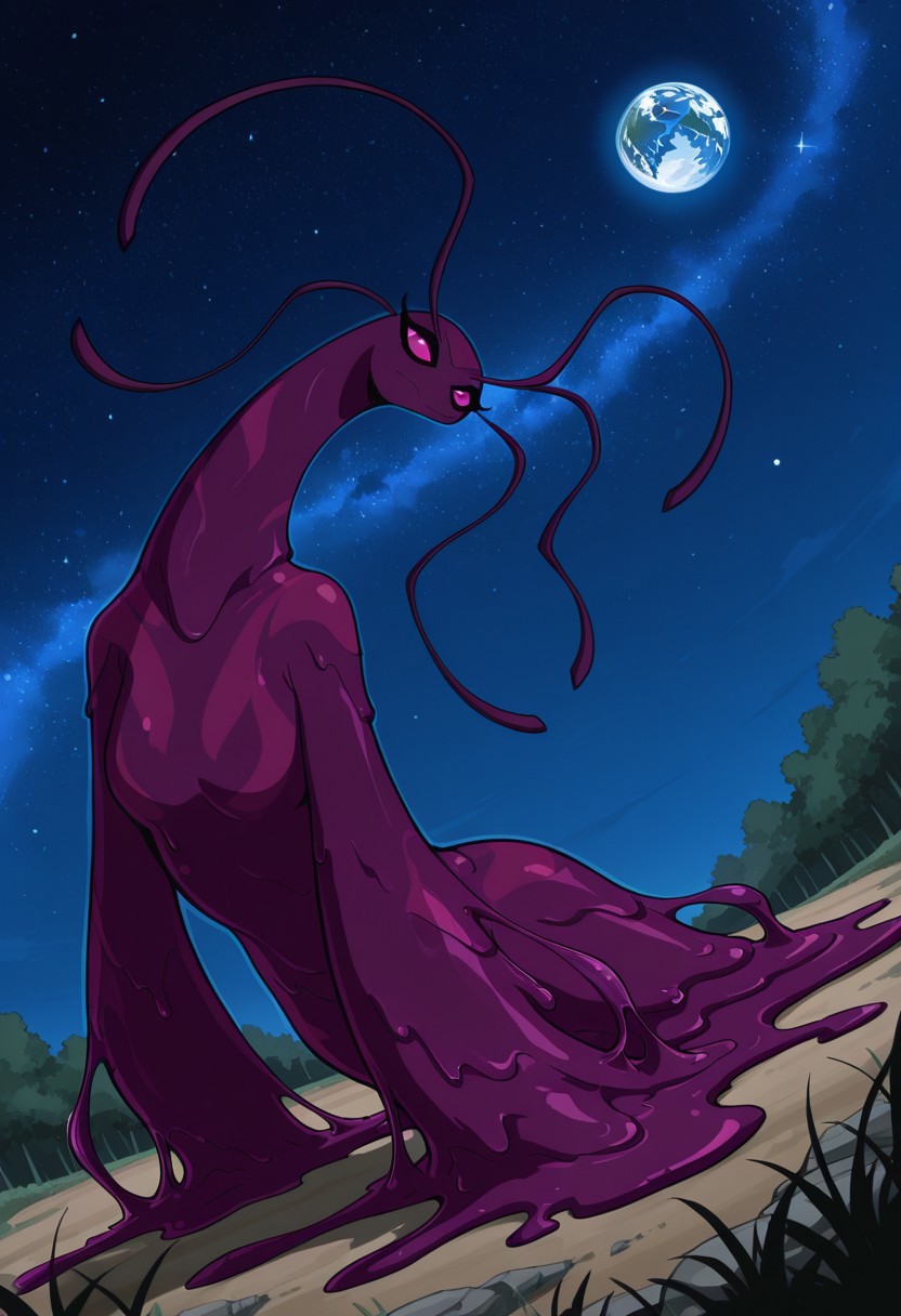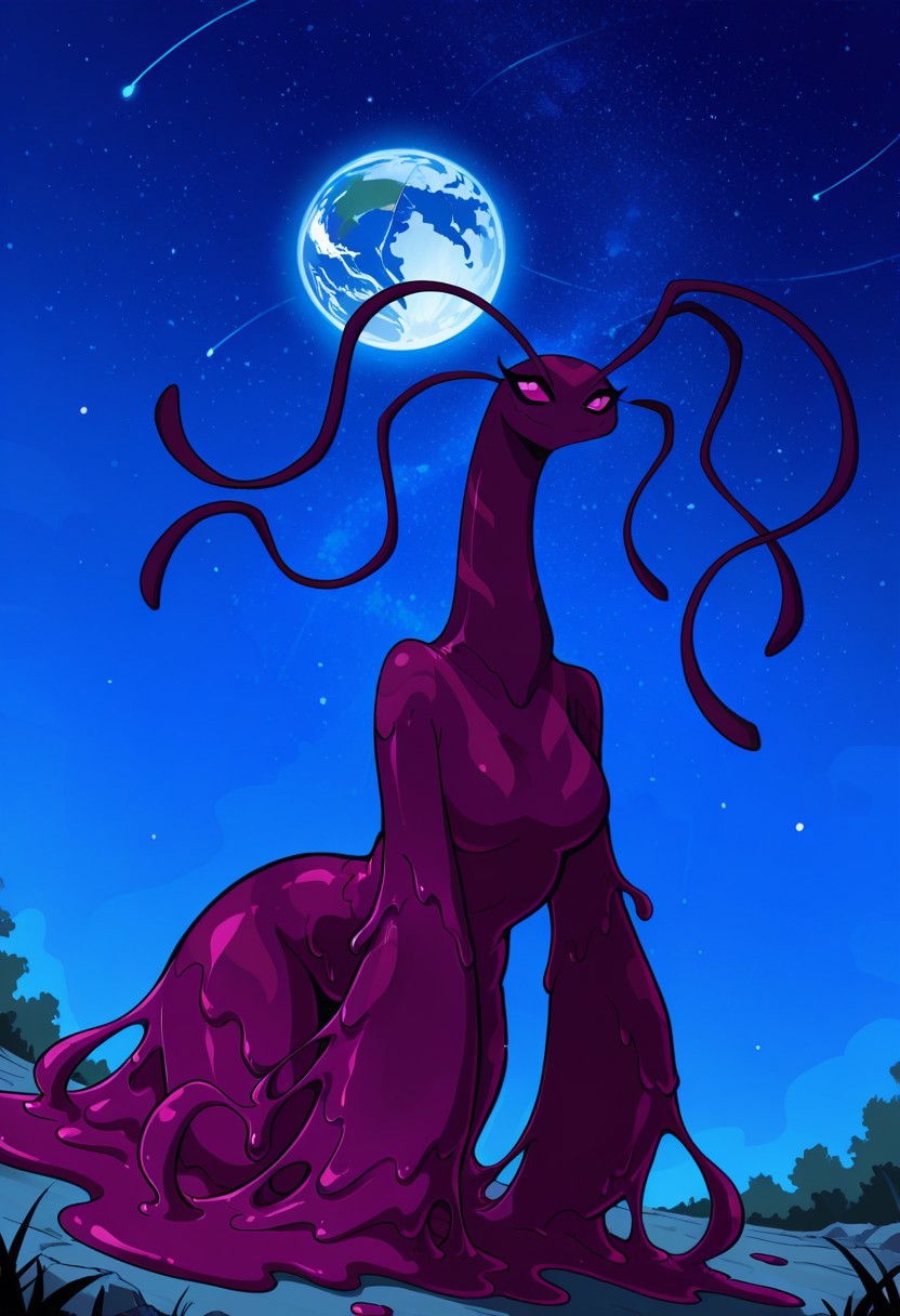Lenopan_(Ben10), no human, alien female, slime (substance), purple skin, four antennas, pink sclera, no nose, big arms,