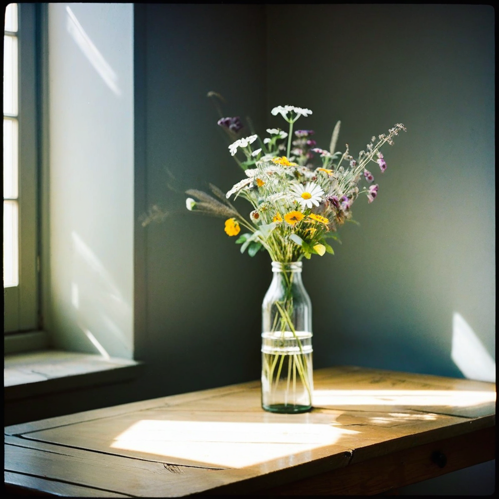 soft grain, daylight film look, gentle tones, natural palette, subtle vignetting