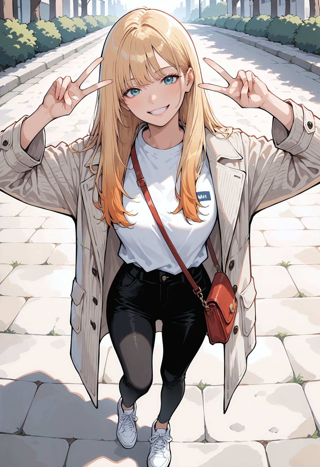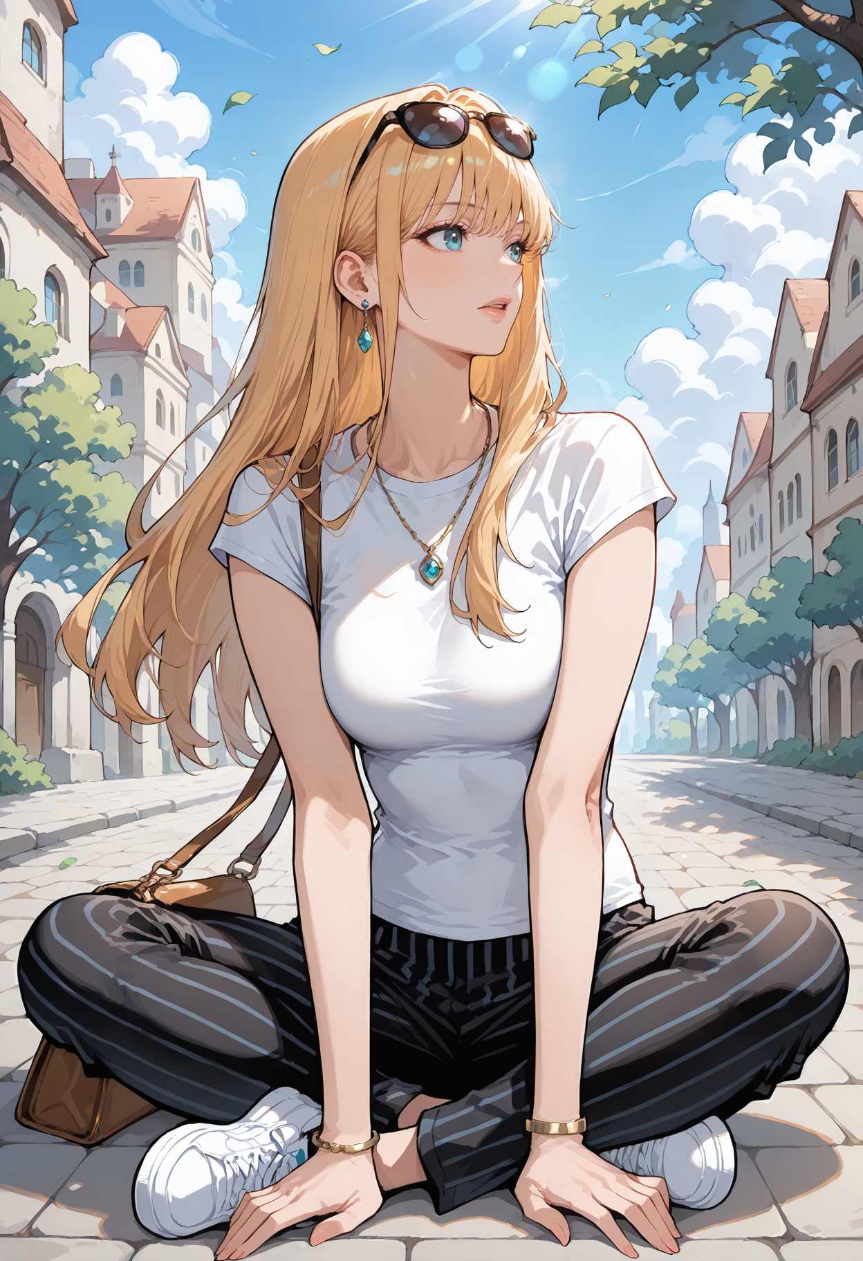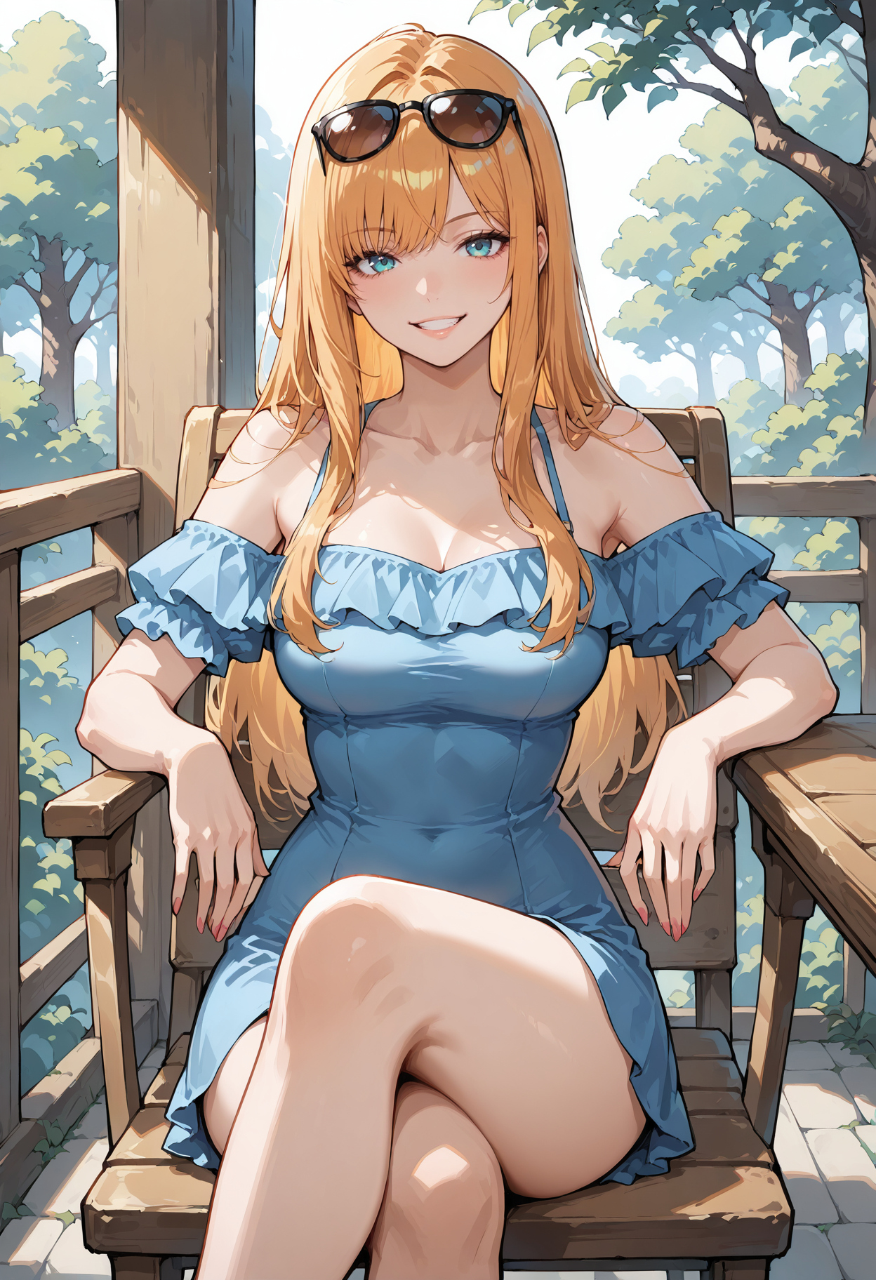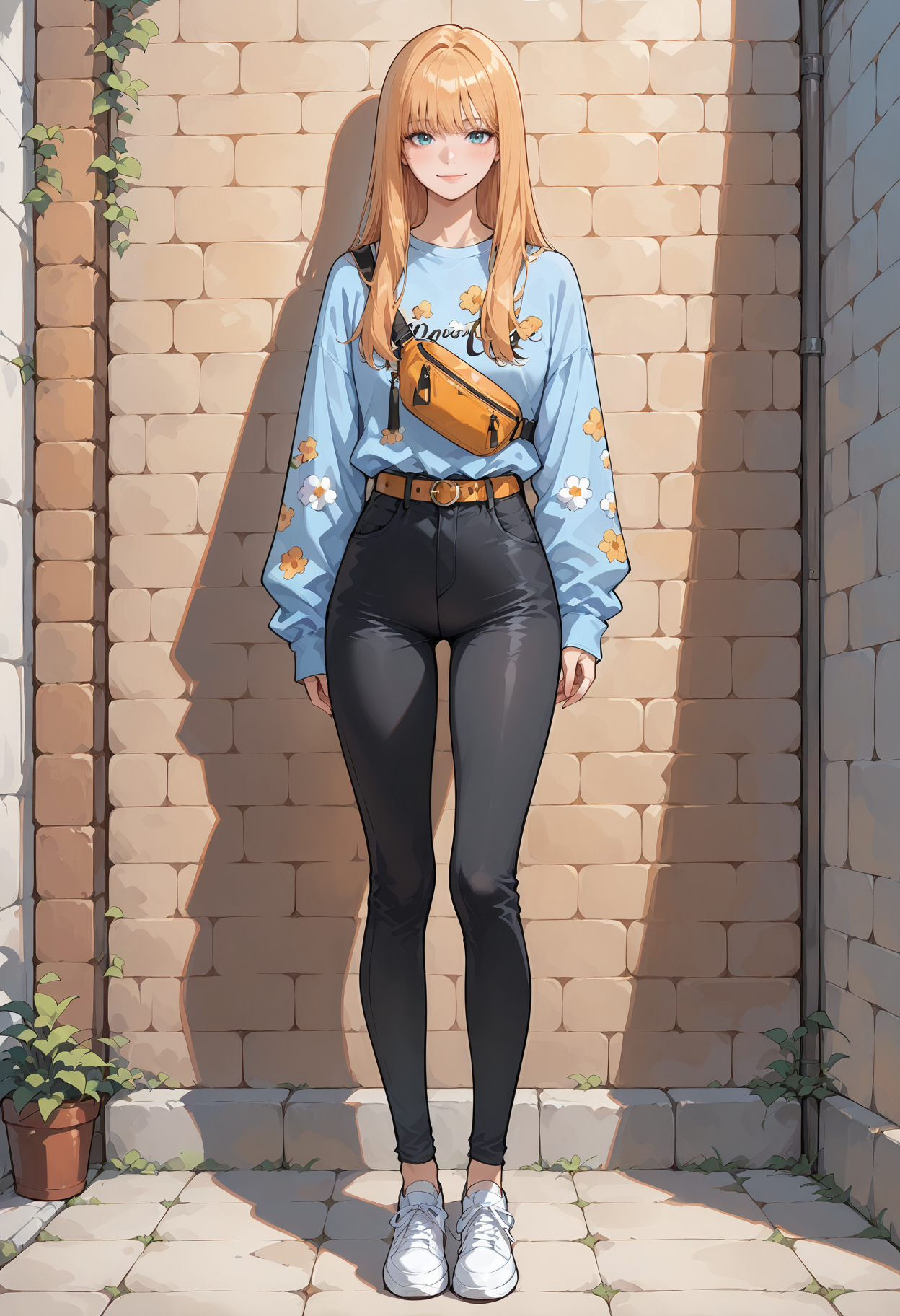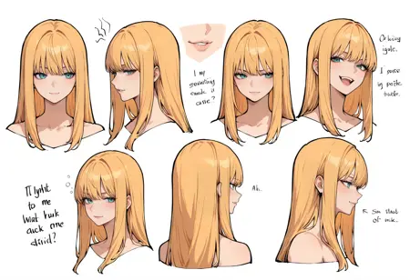1人の女の子、青い目、アクア色の目、金髪、オレンジ色の髪、長い髪、前髪