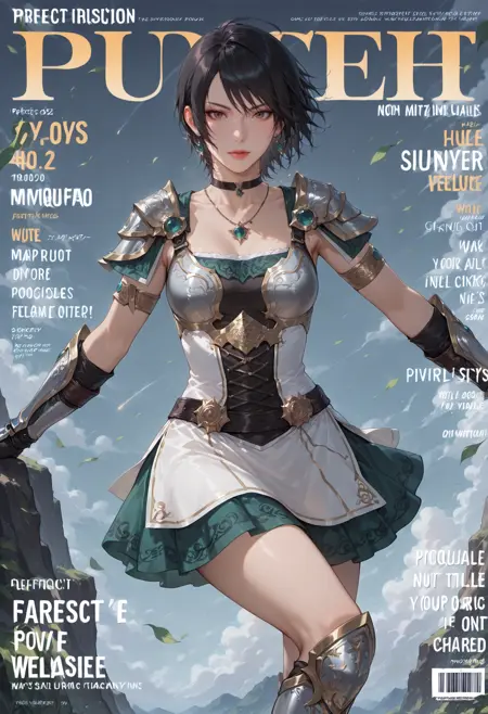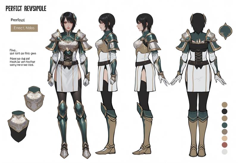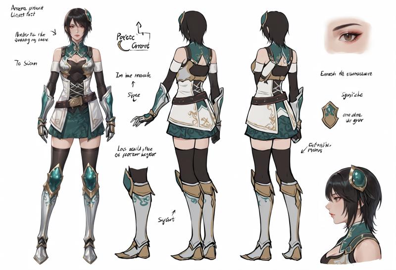 1girl,black eyes,black hair,brown eyes,short hair,armor,gloves,thighhighs,boots,breastplate,shoulder armor, black thighhighs,shoulder pads,pauldrons,side slit,knee boots,white gloves,dress