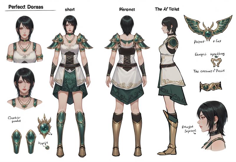 1girl,black hair,brown eyes,short hair,boots,armor,choker,skirt,dress,knee boots,jewelry,armlet,necklace