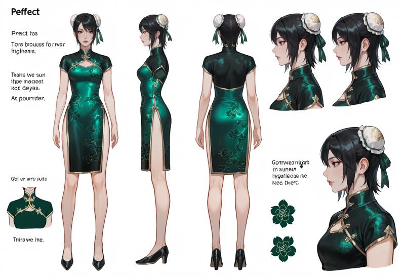 1girl,black eyes,black hair,short hair,hair bun,lips,double bun,single hair bun,bun cover,hair ornament,chinese clothes,dress,china dress,green dress,high heels,short sleeves,side slit,shoes,floral print,bare legs,black footwear