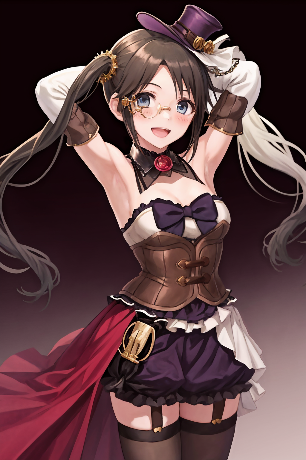(yuikaperf:0.9),双马尾,单片眼镜,可拆卸袖子,小帽,蝴蝶结,可拆卸领子,连衣裙,吊袜带,过膝袜