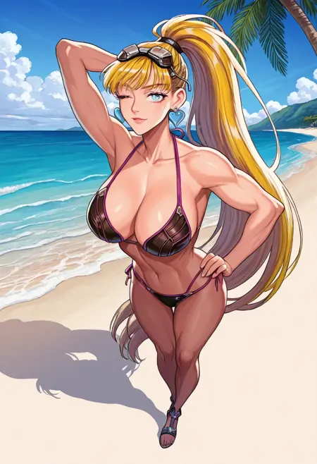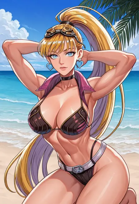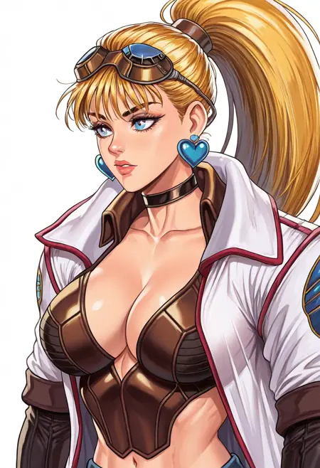 このキャラクターのオリジナルコンセプトアーティストは塚田じゅんですが、これをプロンプトとして使用しても似たような結果は得られません(彼のアートスタイルは年月とともに変化しています)— 代用できるものがあるかはわかりませんが、自由に実験してください。