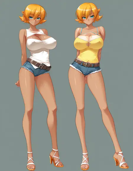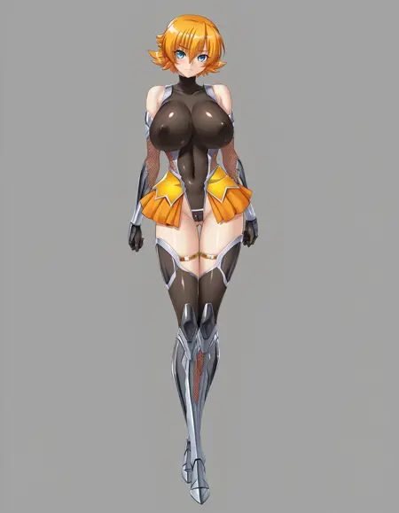 mai_tm_sakura,short_hair,orange_hair,blue_eyes,taimanin_suit,leotard,skirt,fishnets,elbow_gloves