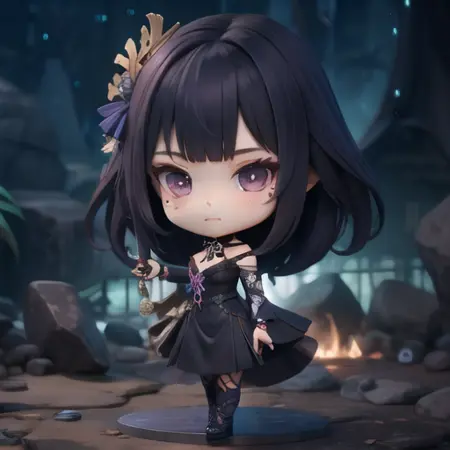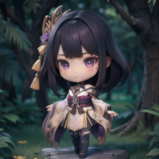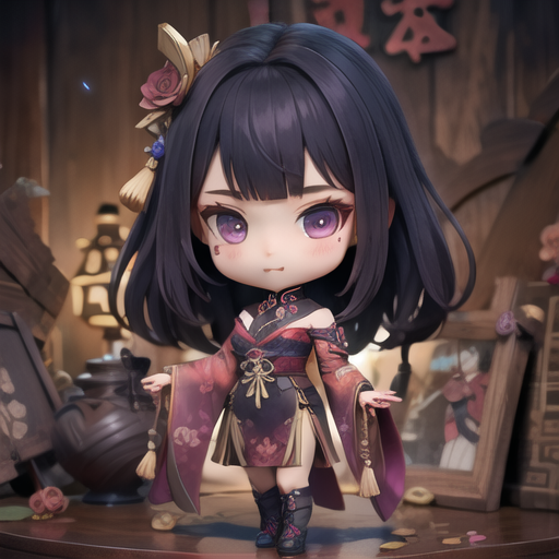 raiden shogun, multiple views, chibi, 即可召唤。生成是正面和背面的手办