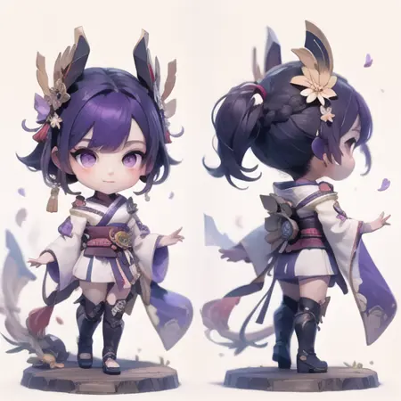raiden shogun, multiple views, chibi, 即可召唤。生成是正面和背面的手办
