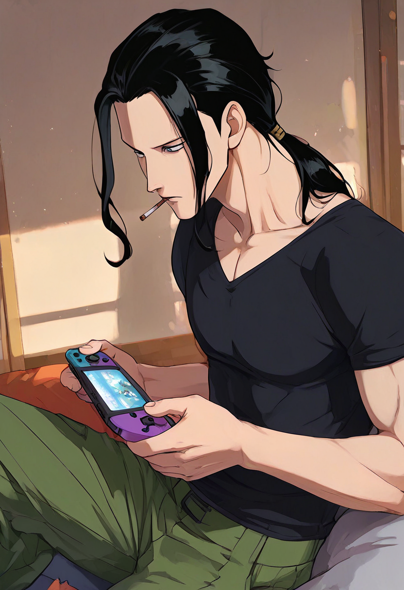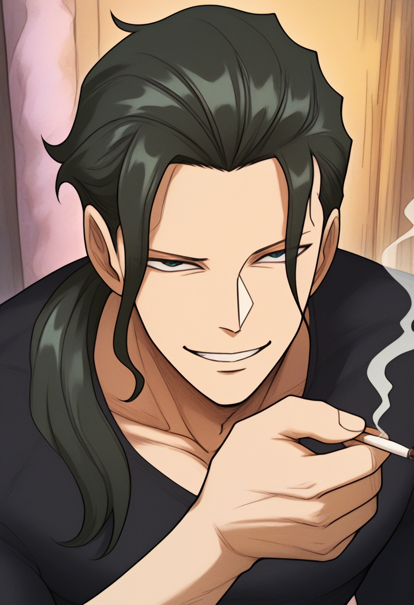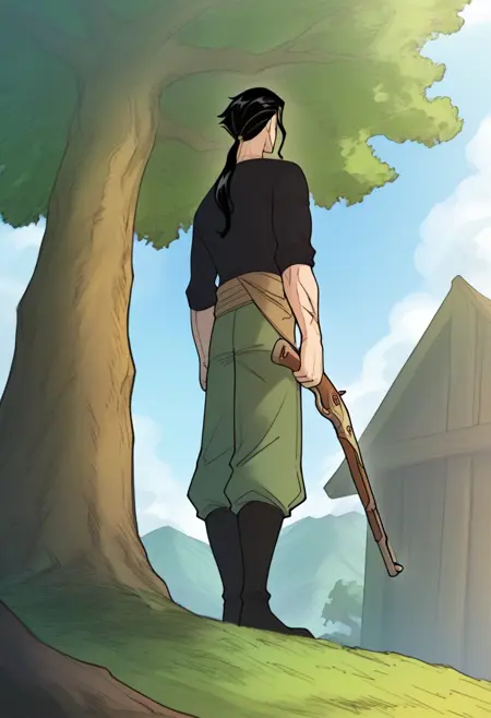 触发词: benn beckman, 1boy, 黑发, 长发, 低马尾, 黑眼