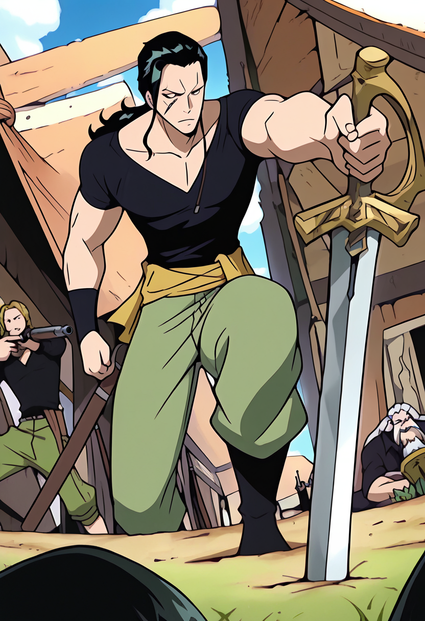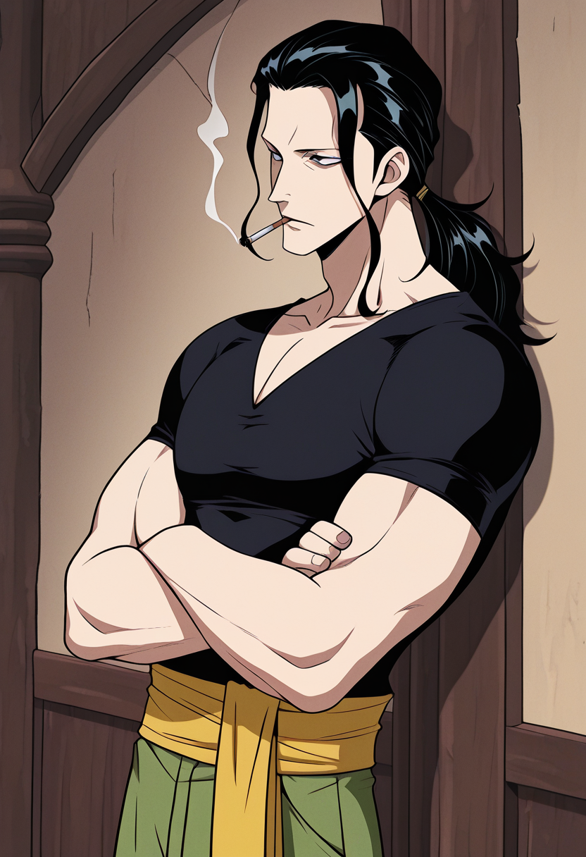 《海贼王》中本·贝克曼的角色LoRa。他首次出现在动画第4集“路飞的过去!红发香克斯登场”,是红发海贼团的副船长或大副。在权重0.7-1.0时效果良好,但在满权重时有时会略显模糊。