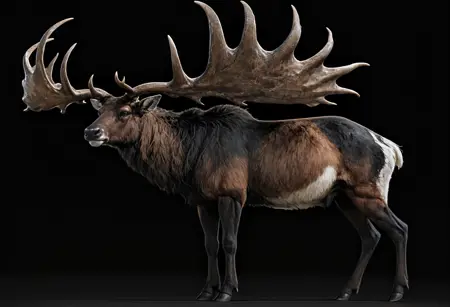 The Megaloceros, known as the Irish elk, was one of the largest deer species ever to exist, living from the Middle Pleistocene until about 7,700 years ago. Despite its name, it was not exclusive to Ireland, occupying much of Europe, western Asia, and Siberia, mainly open plains, steppes, and forest edges.