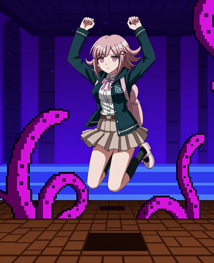 また、このLoRAに私のNononononoway Style LoRAと、Danganronpa 3アニメスタイルのキーワードを組み合わせると、良い結果が得られることがわかりました。両方のLoRAを低めの強度で使用します。例: lora:Nononononoway\_zImageTurbo:0.7, 86_(nononononoway), lora:chiakiNanamiZimage:0.4, nanami_(danganronpa), danganronpa_3_(anime)_(style), This is an anime screencap from Danganronpa 3。