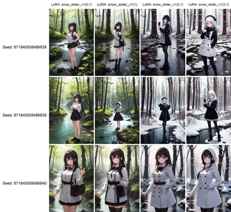 Some sliders to boost up your christmas photos (~ ̄▽ ̄)~. These sliders still give decent result with strength 3. Trigger words are not needed, but using corresponding words to style of the slider boost the effects. For example for snow slider having snow in prompt boosts the effect but are not necessary. How well these work depends on model.