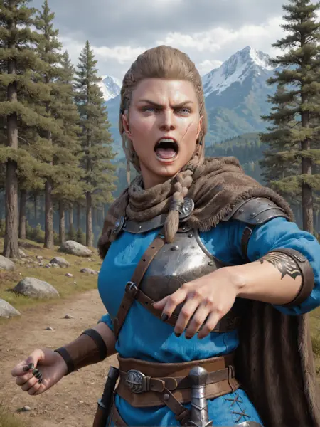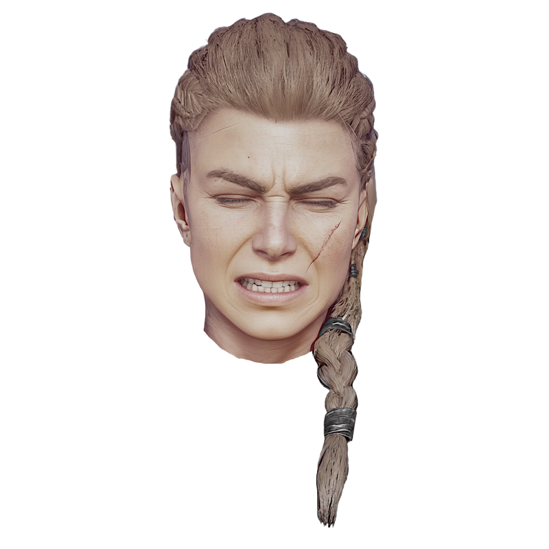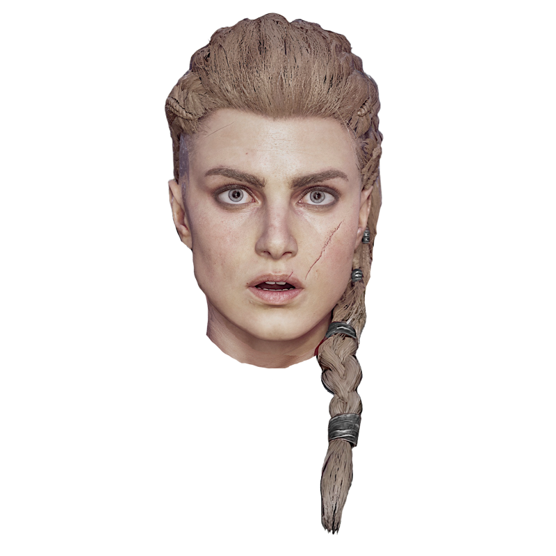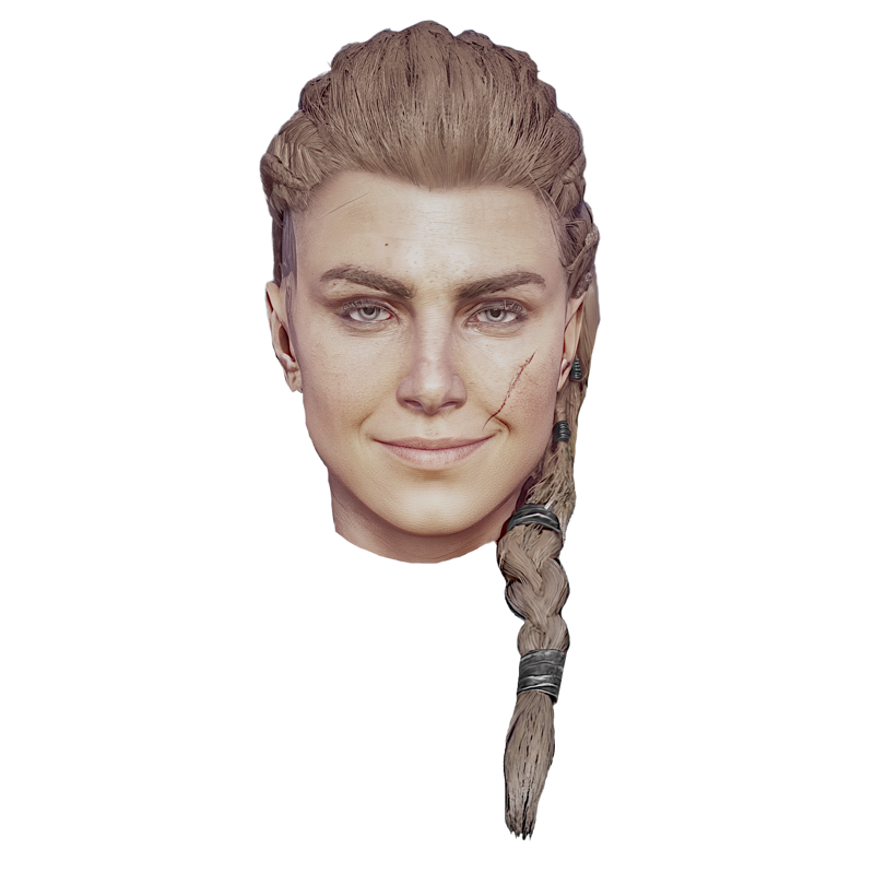 nq_eivor, 長い髪, 金髪, 編み込み, 青い目, 左頬の傷, 右側頭部のタトゥー
