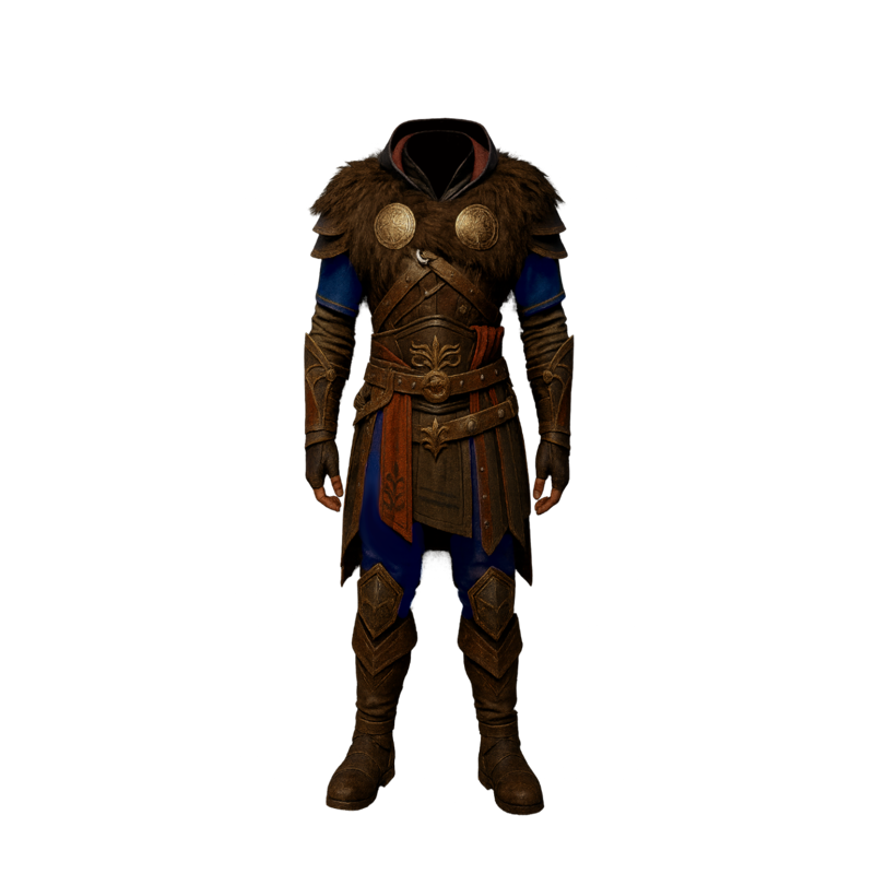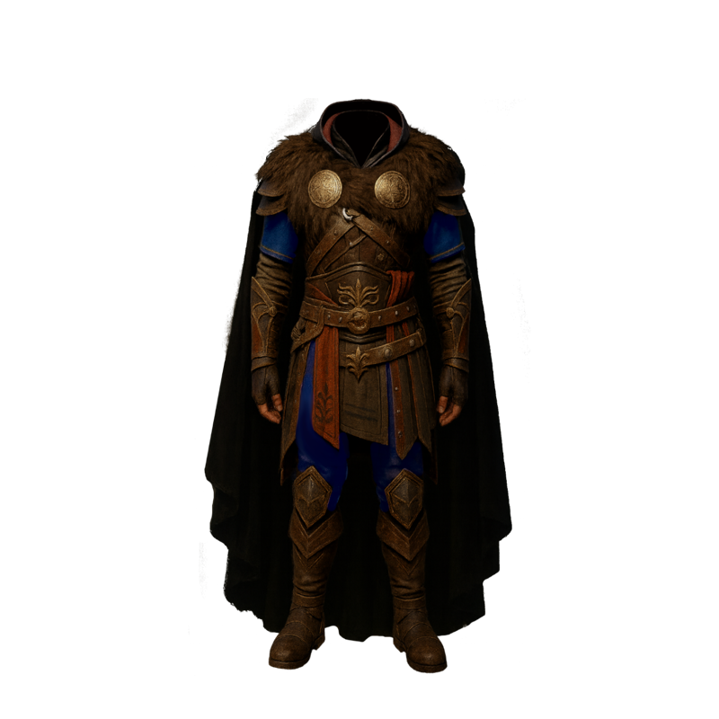 armor, raven armor, raven's armor, viking armor, leather armor, brown fur pelt, brown leather boots, black cloak, brown fur cloak