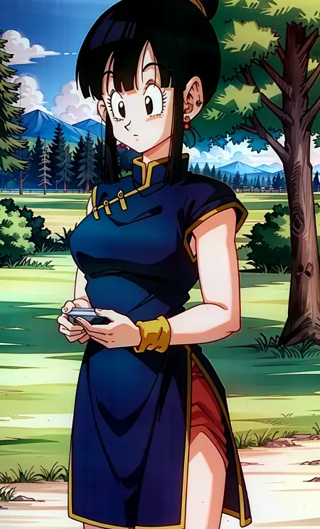 chi-chi (dragon ball), 黒髪, 胸, 前髪, 横髪, 中程度の胸, 長髪