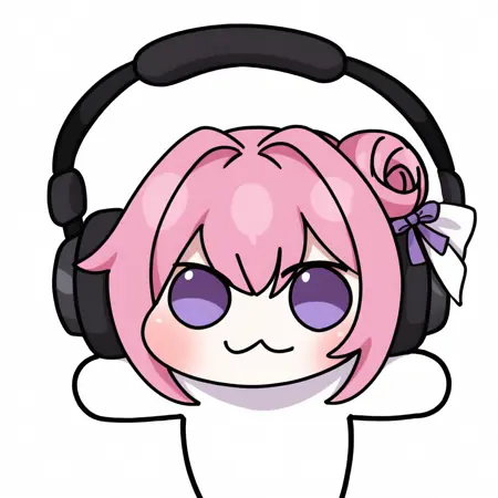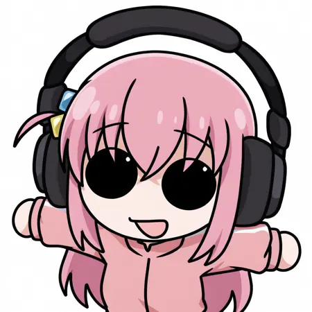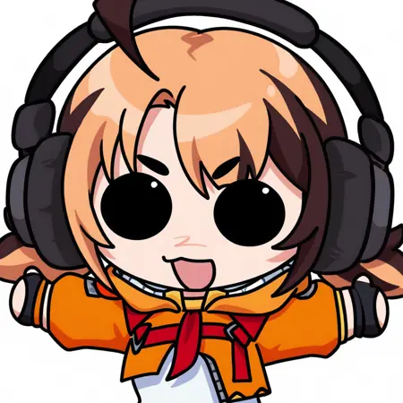 推奨タグ: 単純な背景、白い背景、上半身、広げた腕、チビ、視線を向ける、黒い目、実線の円形の目、開いた口