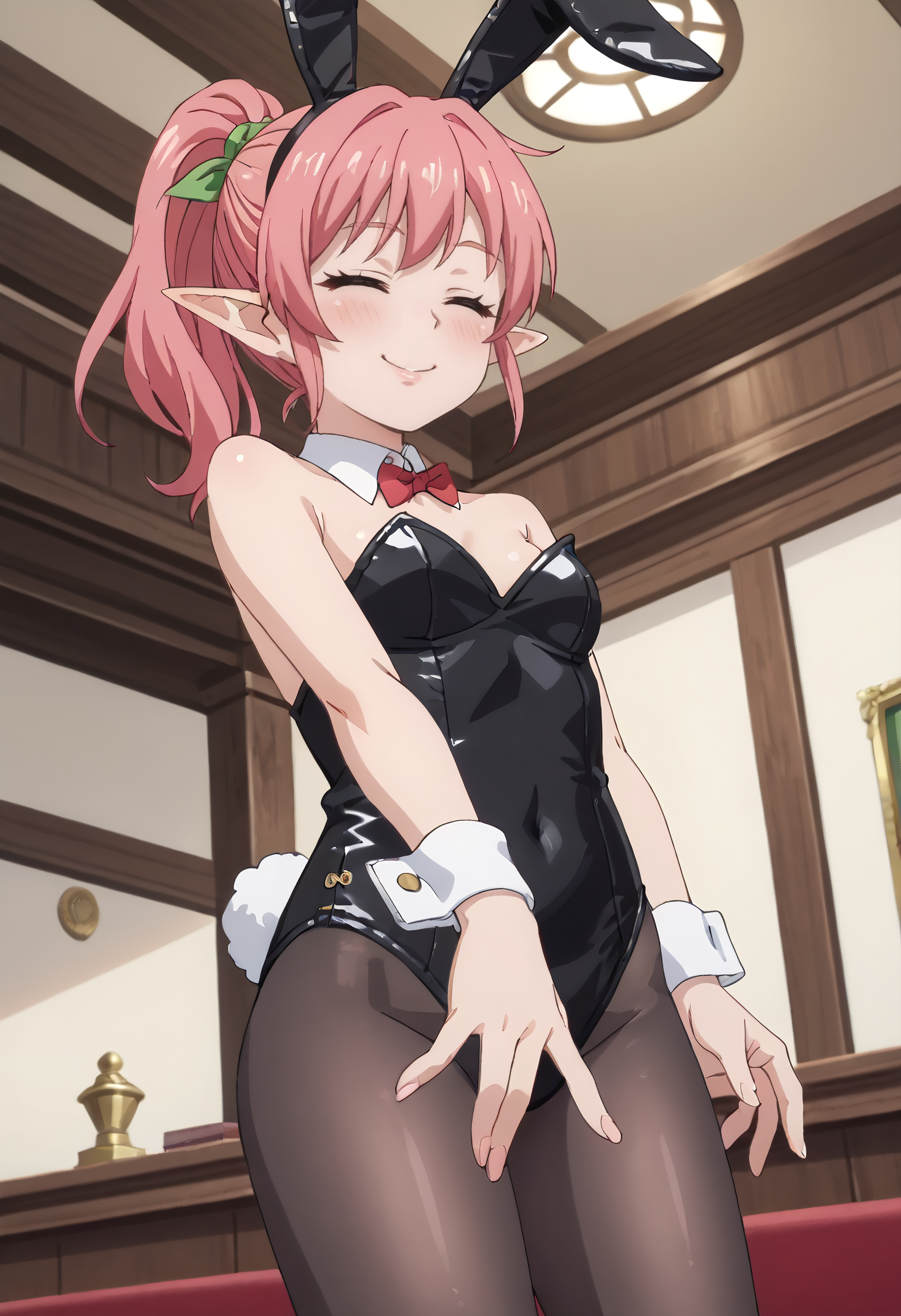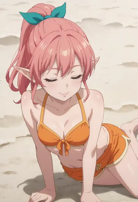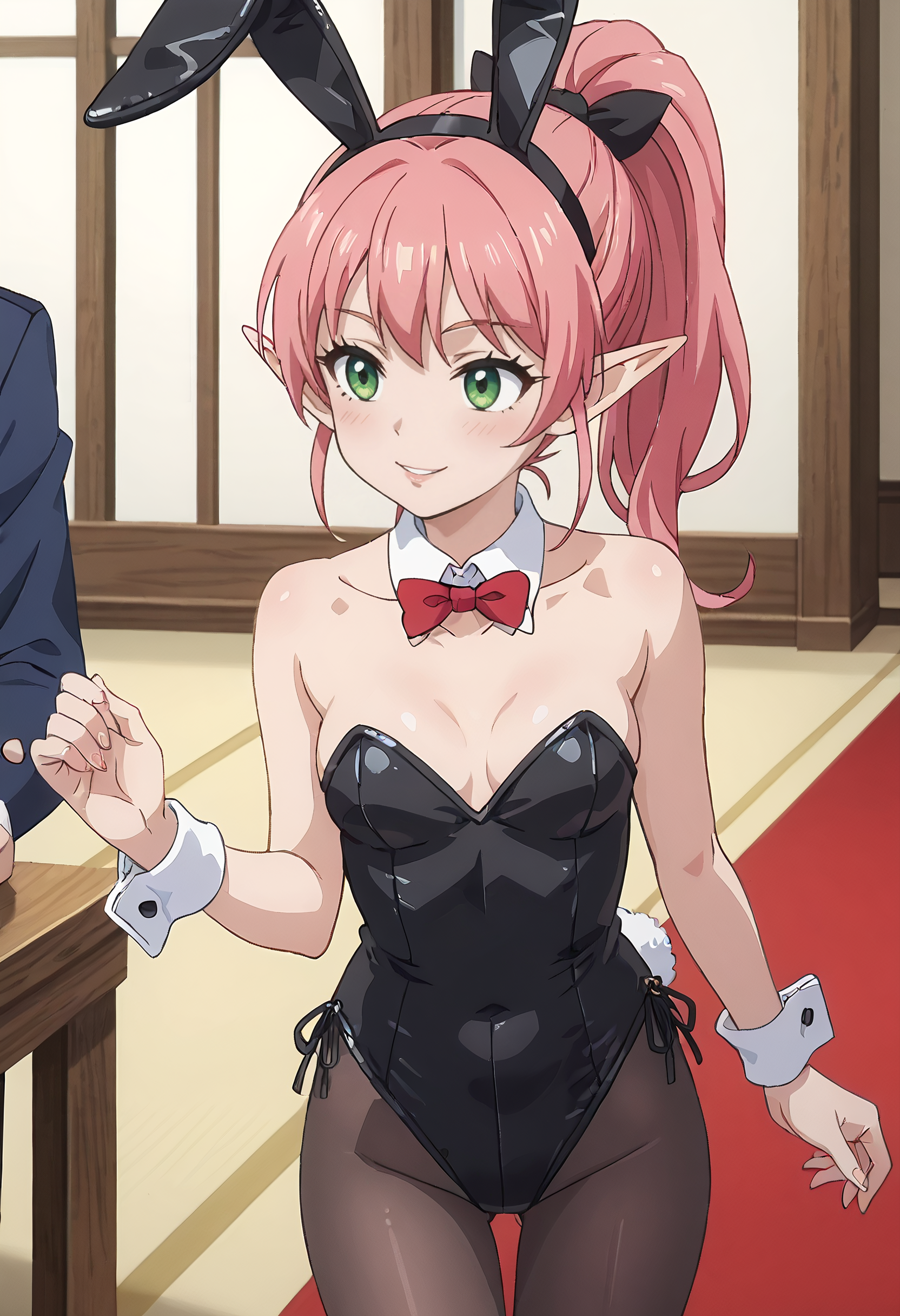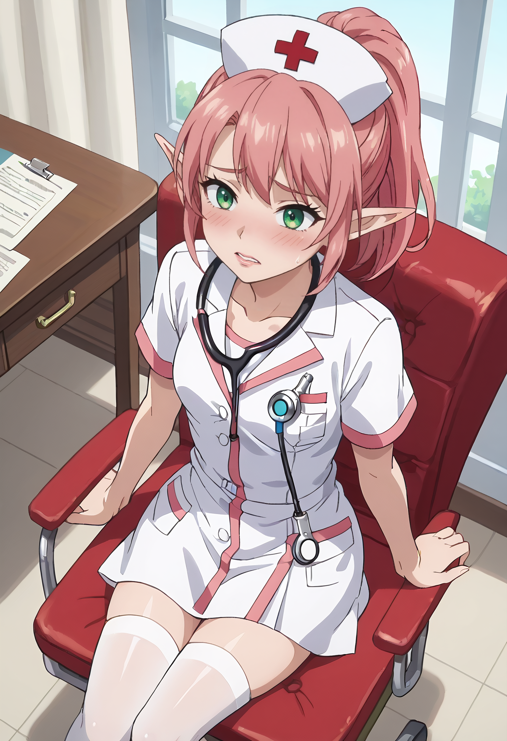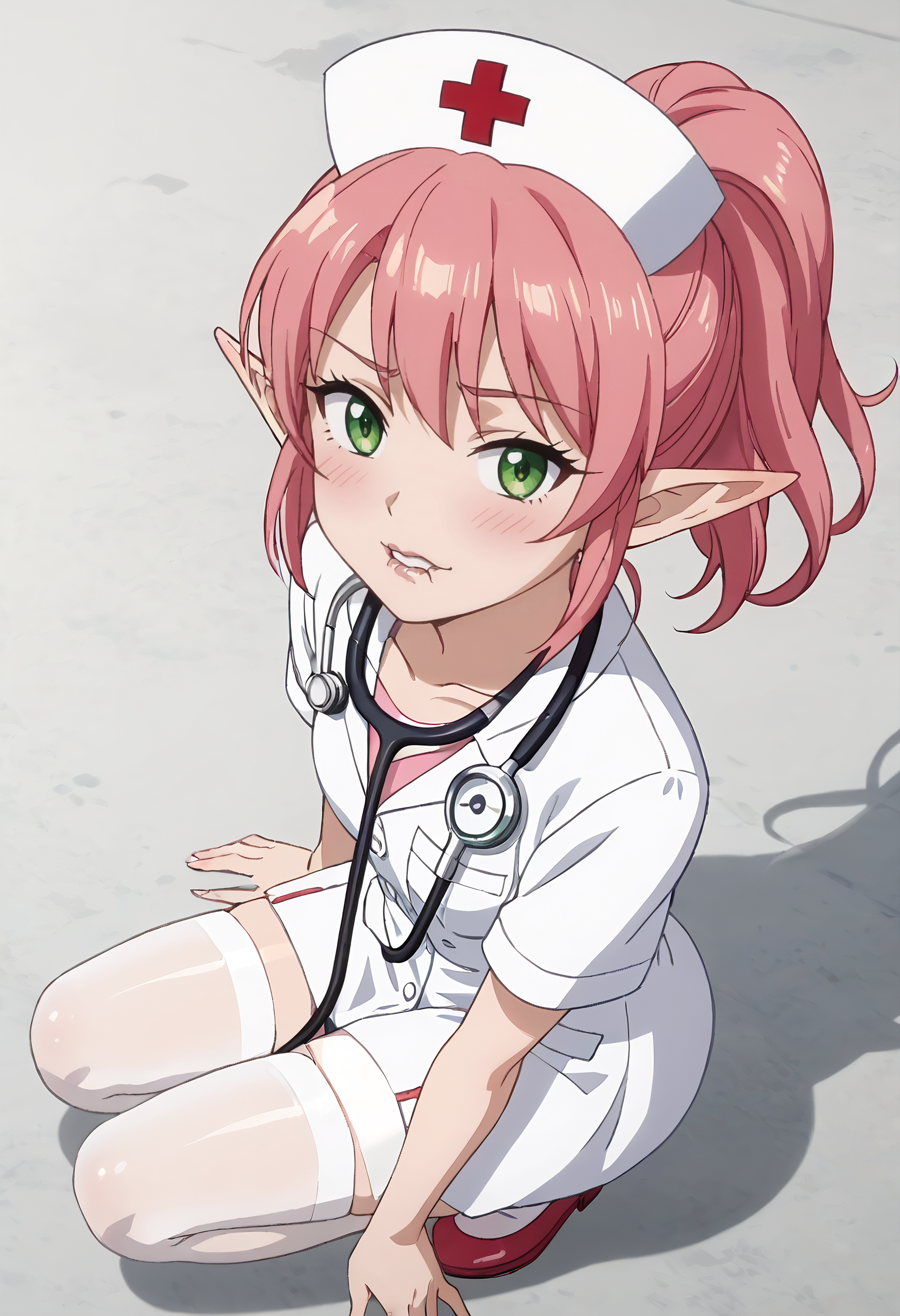 BYNNia,精灵,长发,粉发,尖耳,马尾,双马尾,眉毛透过头发可见,
