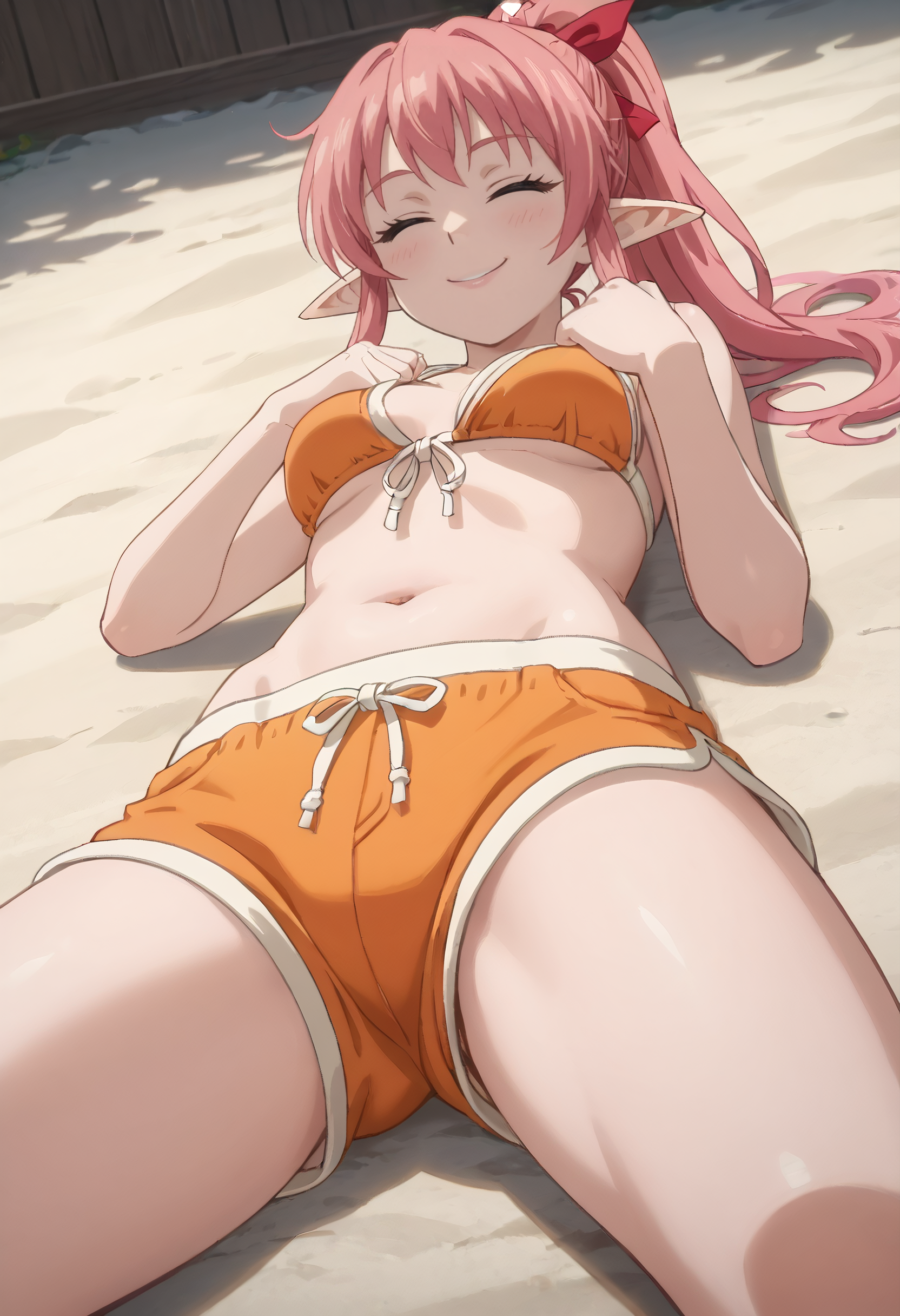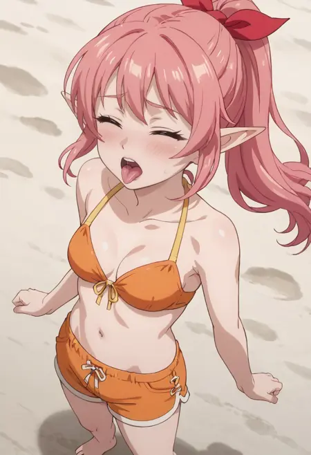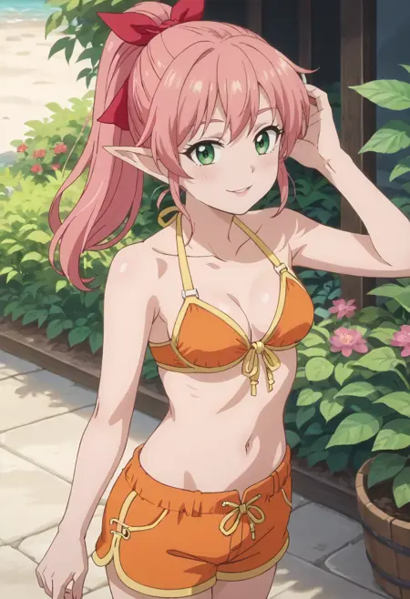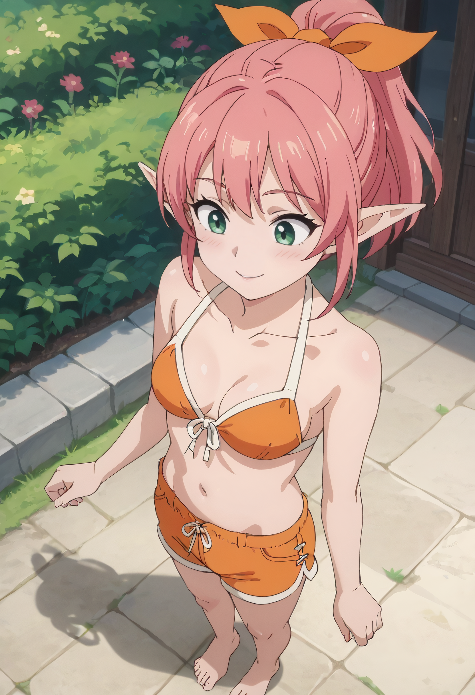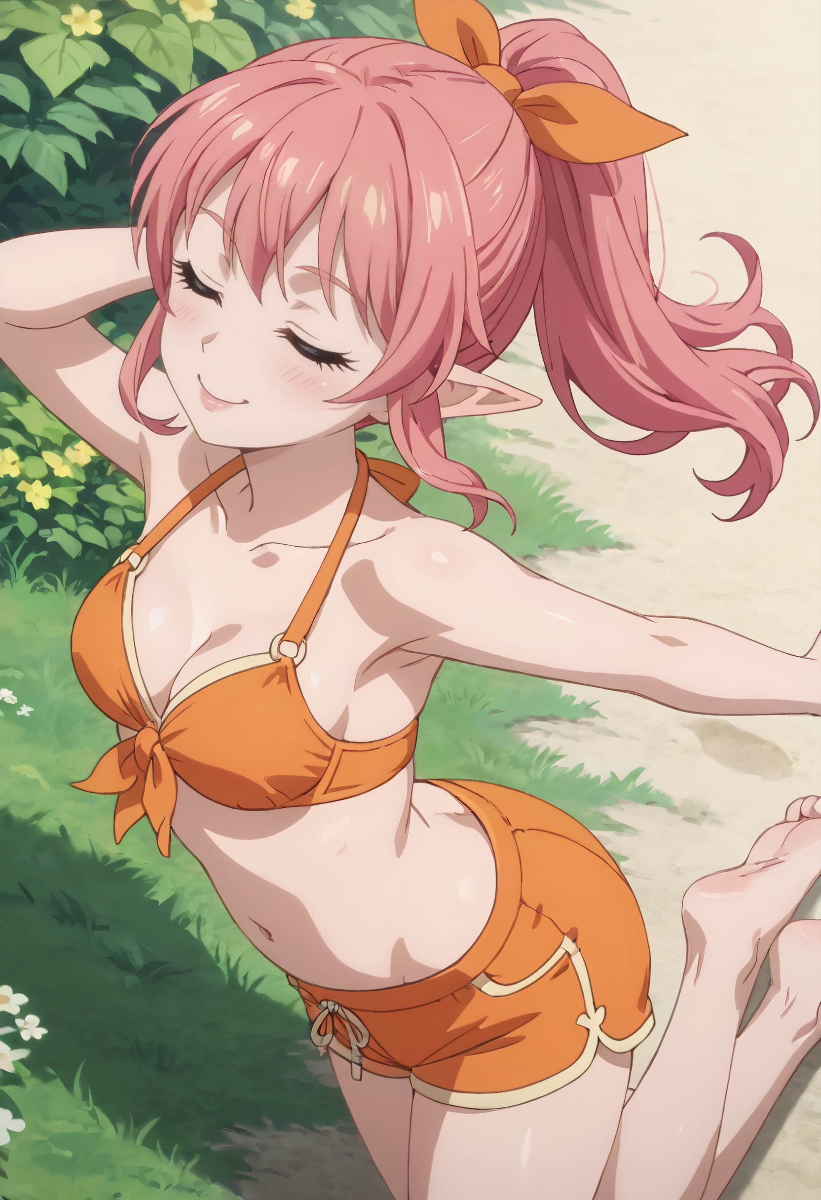 NiaSwimsuit,露臂,赤脚,发带丝带,肚脐,橙色比基尼,橙色短裤,丝带,短裤,背心,比基尼短裤,