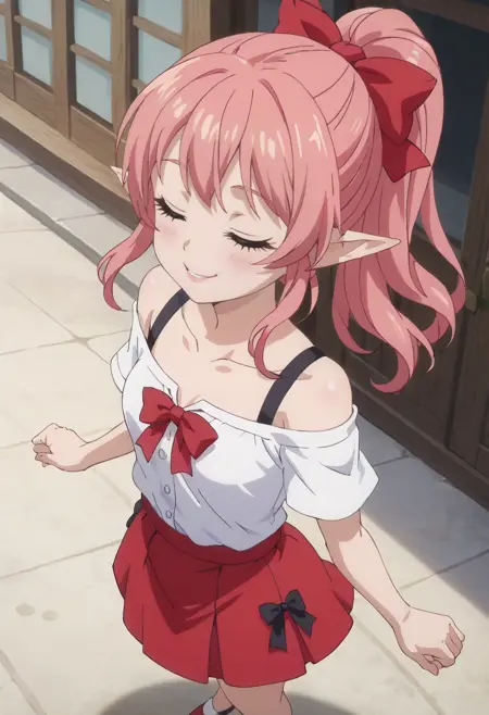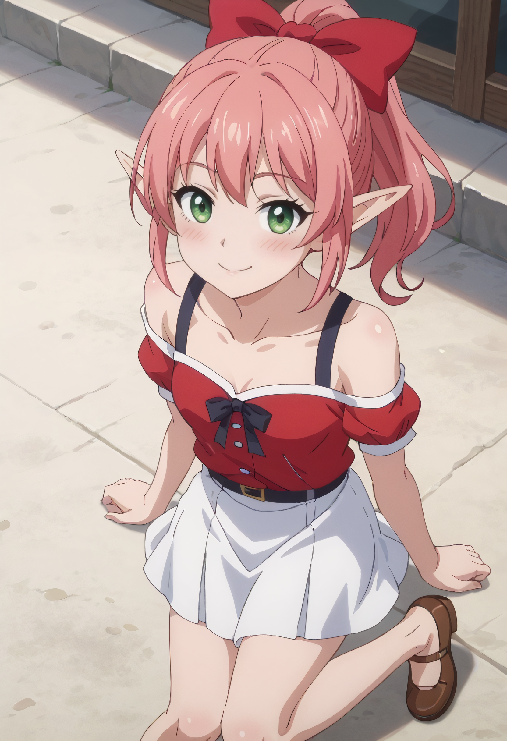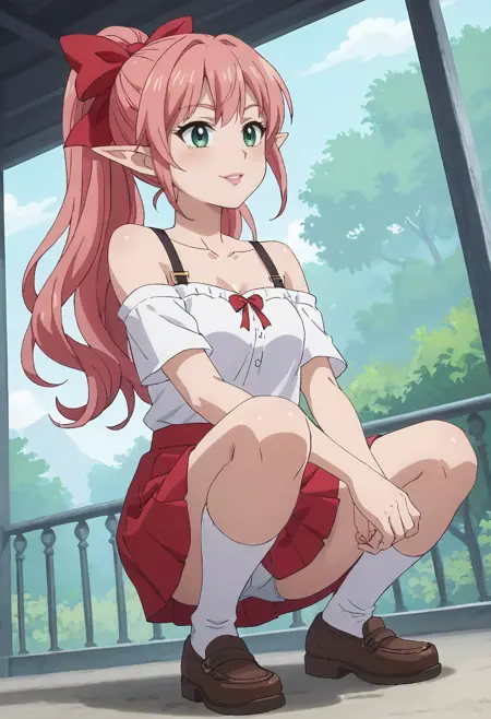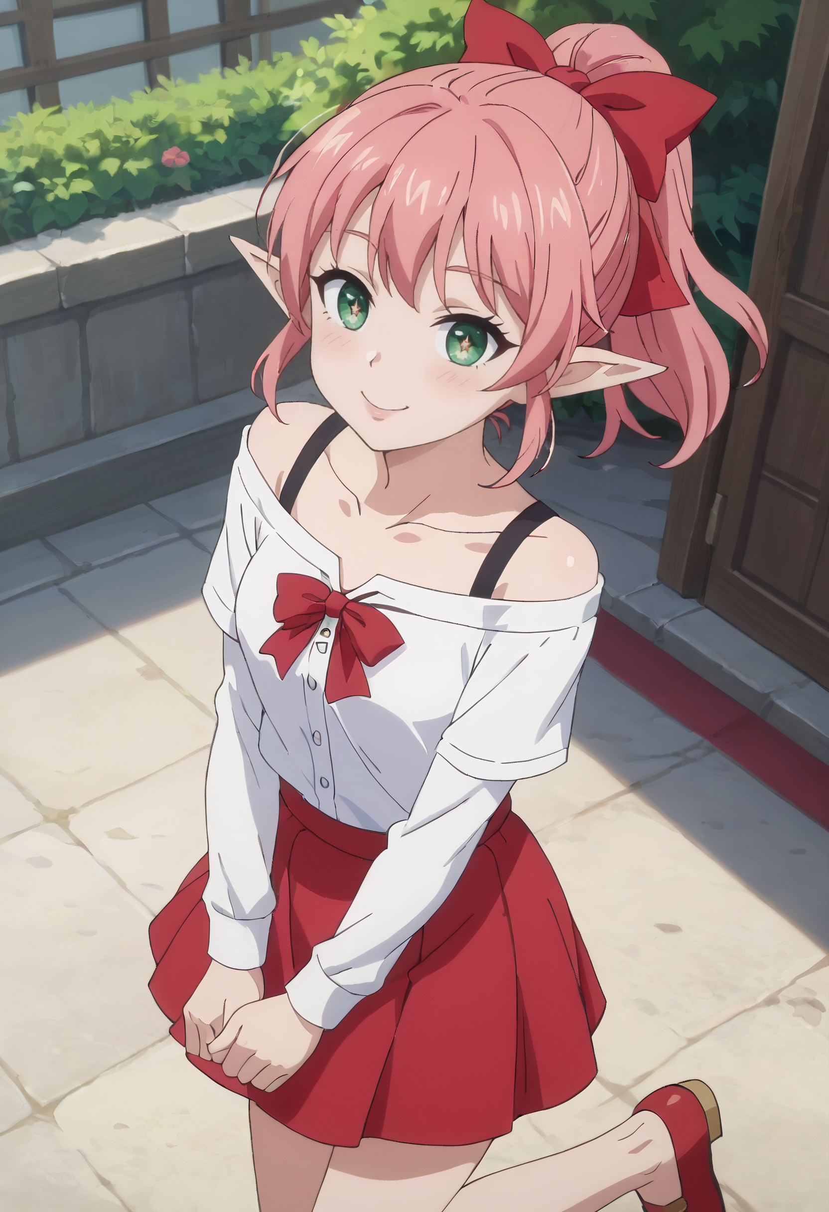 NiaShirt,衬衫,露肩,白衬衫,发饰,蝴蝶结,锁骨,发带蝴蝶结,发带丝带,红蝴蝶结,红丝带,丝带,裙子,红裙子,鞋子,外罩衬衫,红外罩衬衫,黑色肩带,
