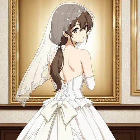 • ウェディングドレスの背面にはコルセットの紐が必ずしも表示されない。ドレスの背面ビューにはコルセットの紐を追加するとこの問題を修正できる。前面ビューからは削除すること(そうでないと胸元が上書きされる)。