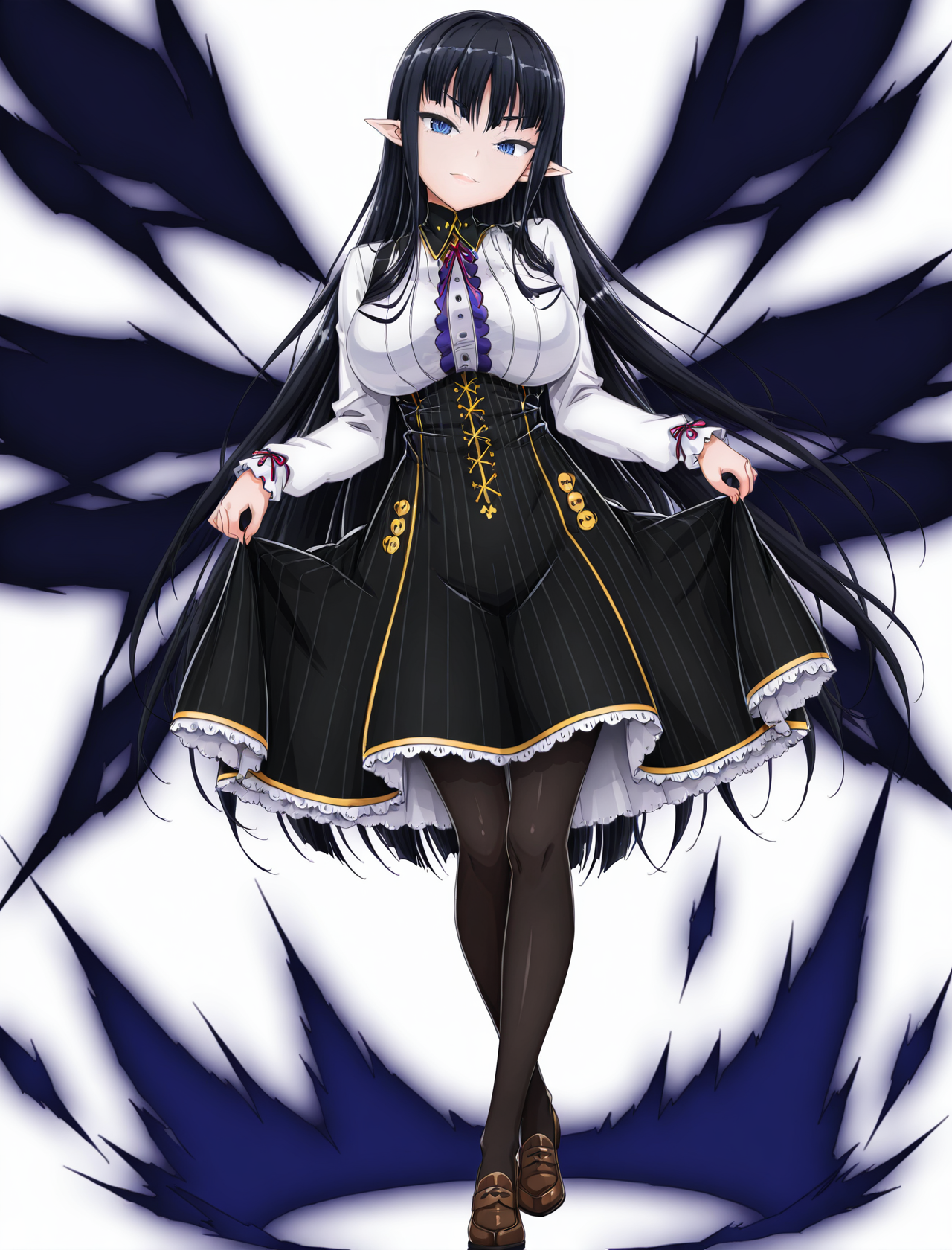 | 训练词汇 | NyxDXD,bangs,slit_pupils,very long hair,black hair,blue eyes,breasts,large breasts,pointy ears,blunt bangs,已复制! multiple_wings,black wings,wings of darkness,energy wings,aura of darkness,已复制! skirt,long sleeves,shirt,striped,ribbon,white shirt,high-waist skirt,black skirt,striped skirt,vertical-striped skirt,vertical stripes,frills,buttons,long_skirt,已复制! black_pantyhose,loafers,已复制! |