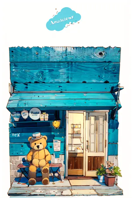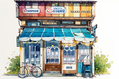 这个模型的风格实际上更像乡镇街角那种小商铺的感觉,画面温暖,画风是马克笔手绘风格,带着一种悠然自得的氛围,我很喜欢。