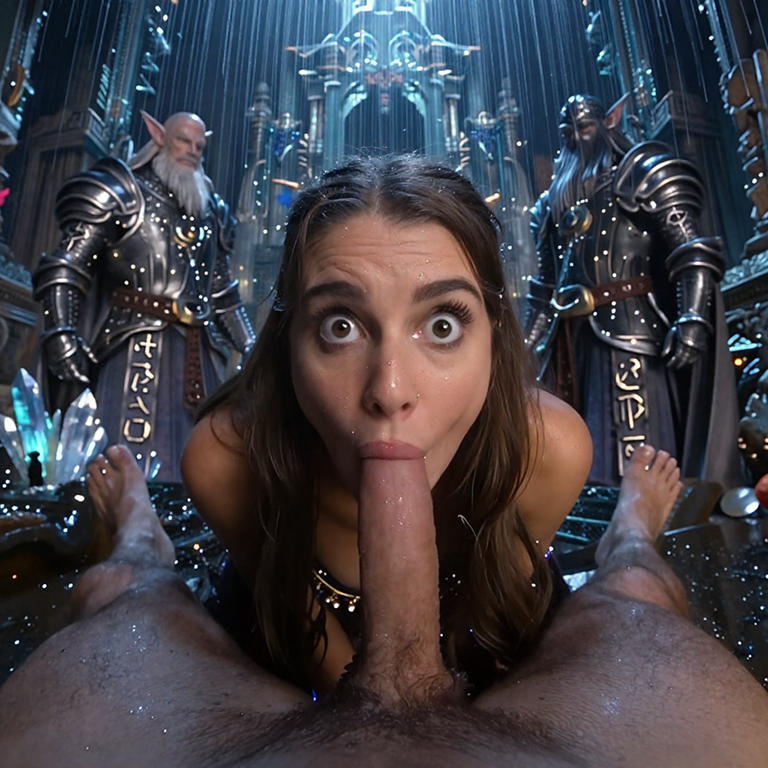 젊은 여성이 구강성행위를 하고 있다. 그녀의 표정은 집중적이고 단단하며, 입술이 남성의 발기된 음경을 감싸고 있고, 남성의 하체는 허리 아래로 보인다. 여성의 시선은 카메라 쪽으로 향해 있어 시청자와 직접적인 연결을 형성한다. 전체 장면은 거칠고 사과하지 않는 방식으로 명시적인 성행위의 순간을 포착하고 있다.