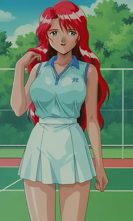 1girl, long red hair, blue eyes, huge breasts, red lips